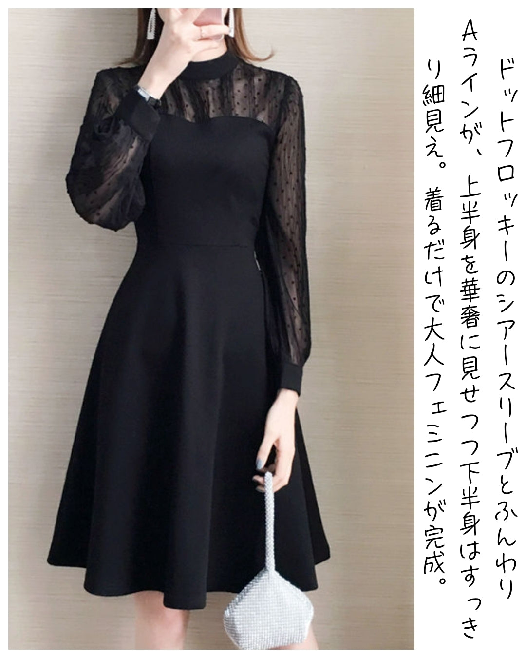 ✅ ドットシフォン袖で上品な透け感