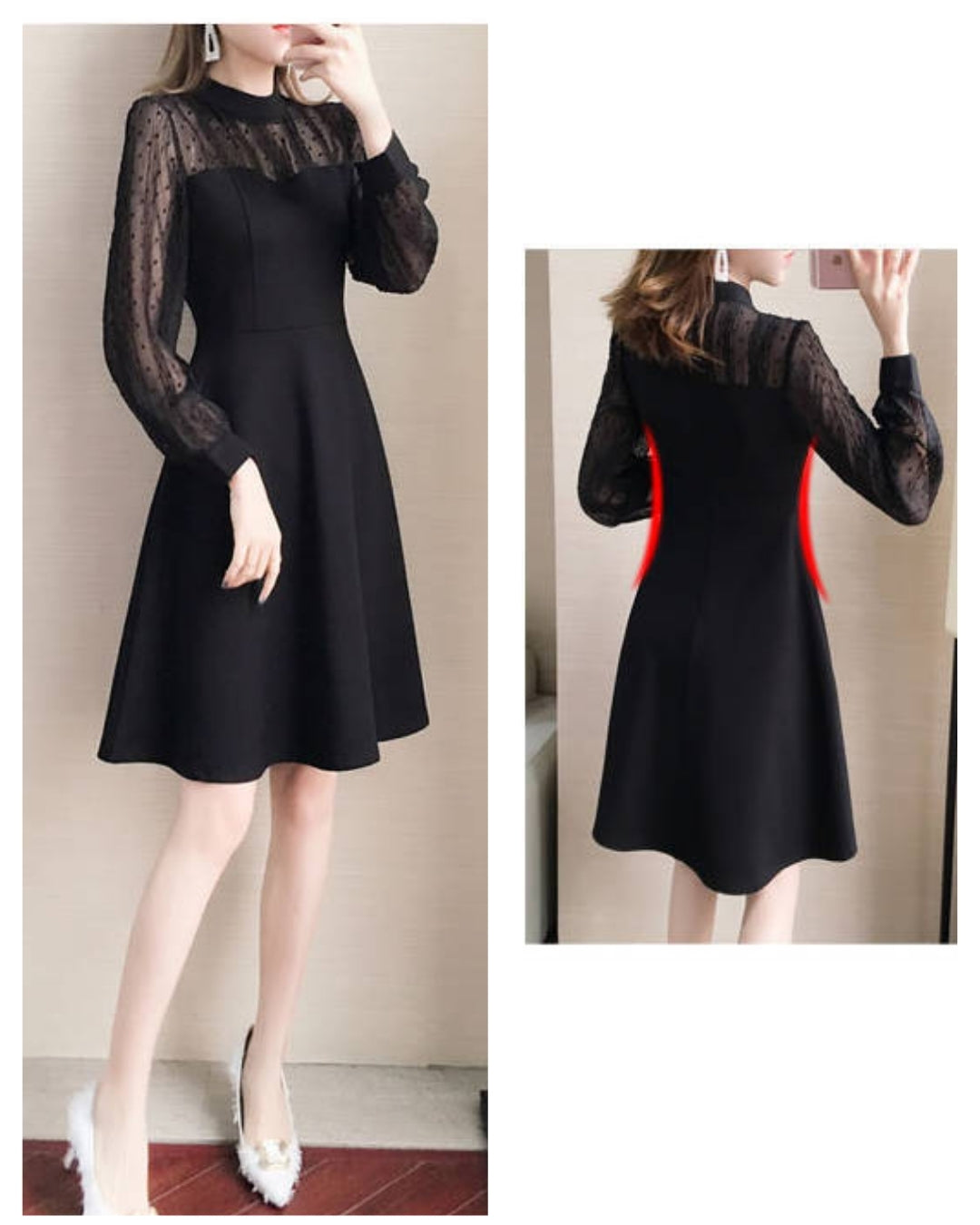 このワンピ、着た瞬間に“うわ、細っ…!”って思わず鏡を二度見しました🤣✨ ドットの透け感がさりげなく色っぽいのに、いやらしさゼロの上品さ。Aラインの揺れも絶妙で、脚がすらっと長く見えるんです。結婚式でも女子会でも、とりあえずこれ着とけば間違いない1枚ですよ♡