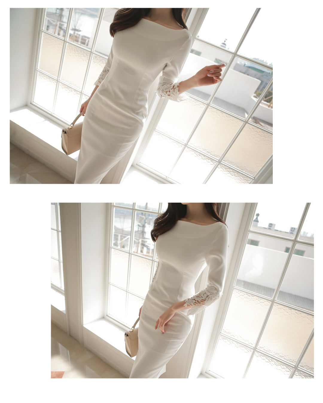 切替レース七分袖タイトワンピ【凛とした佇まいに女らしさを忍ばせる】