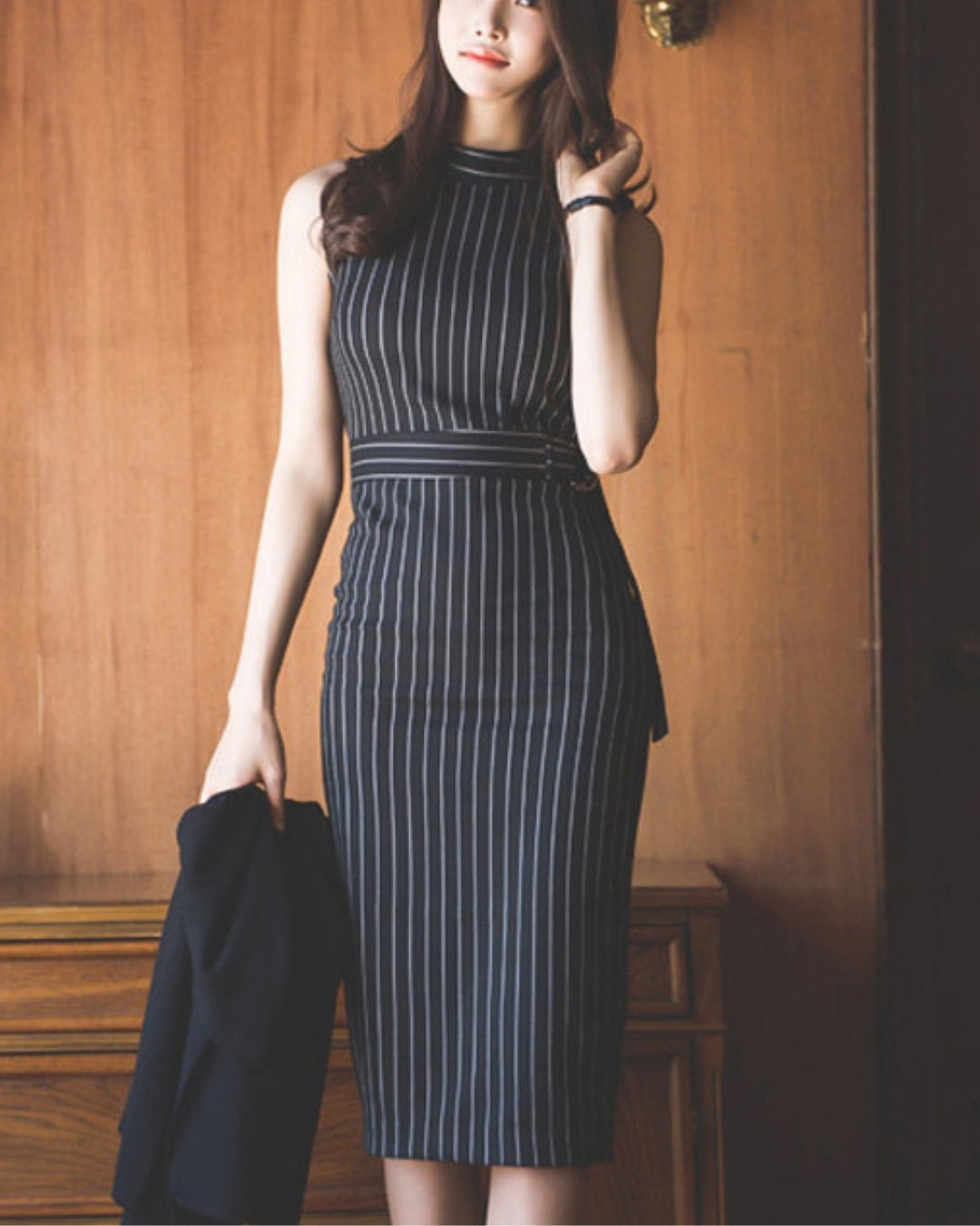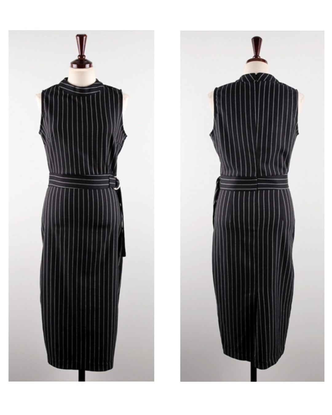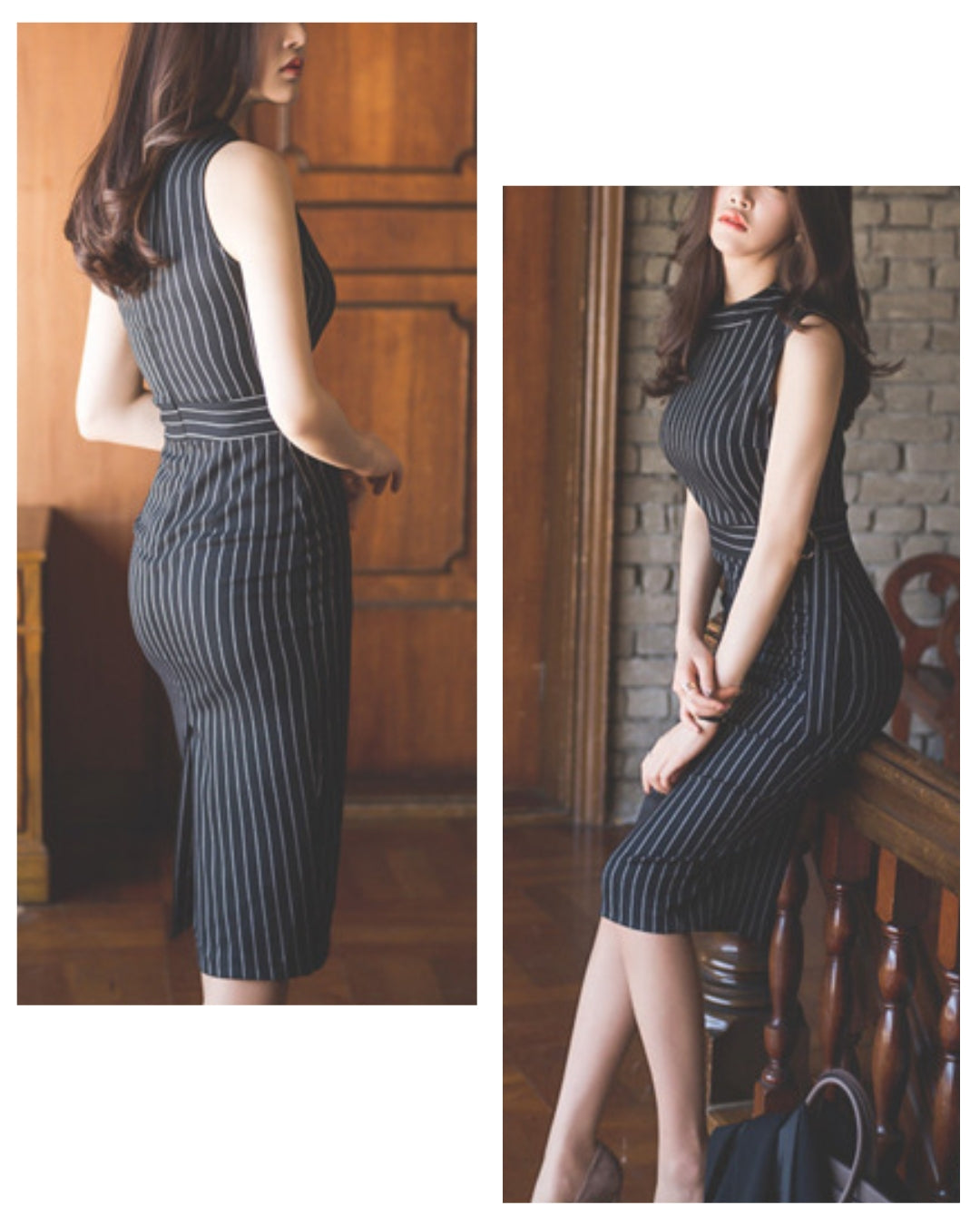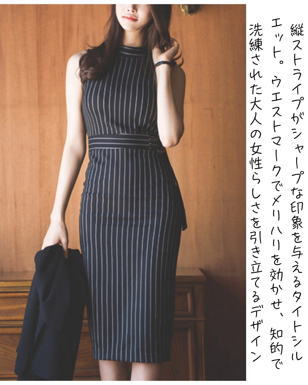ストライプタイトドレス【計算された縦ライン大人モードの品格】