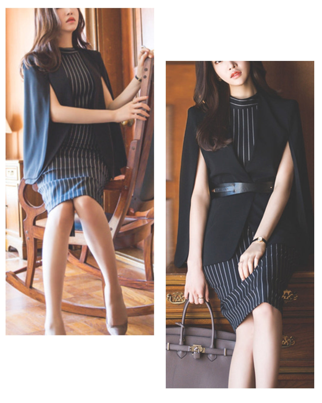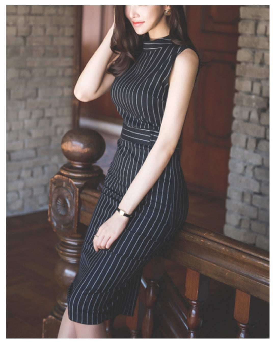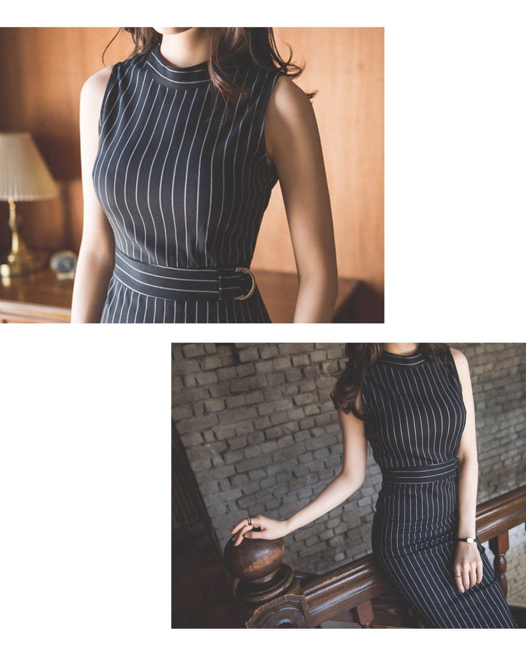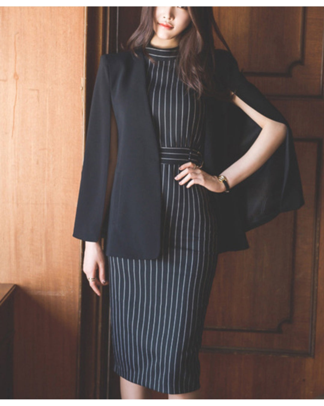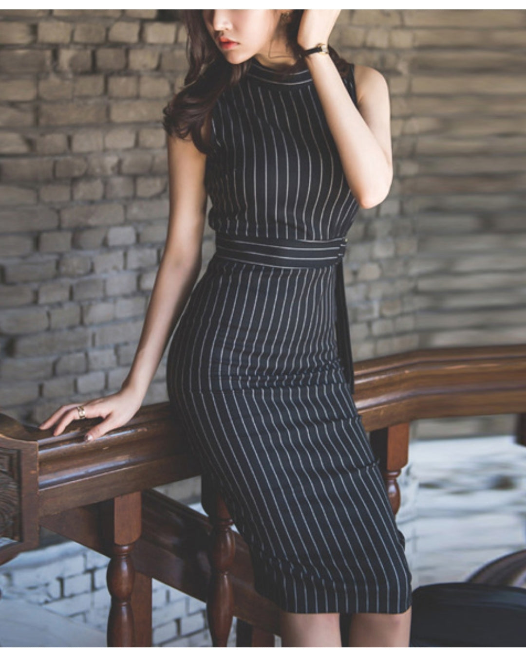 ストライプタイトドレス【計算された縦ライン大人モードの品格】