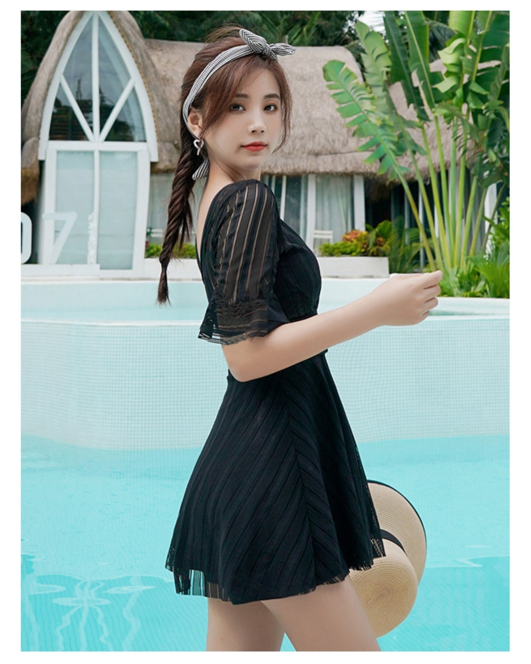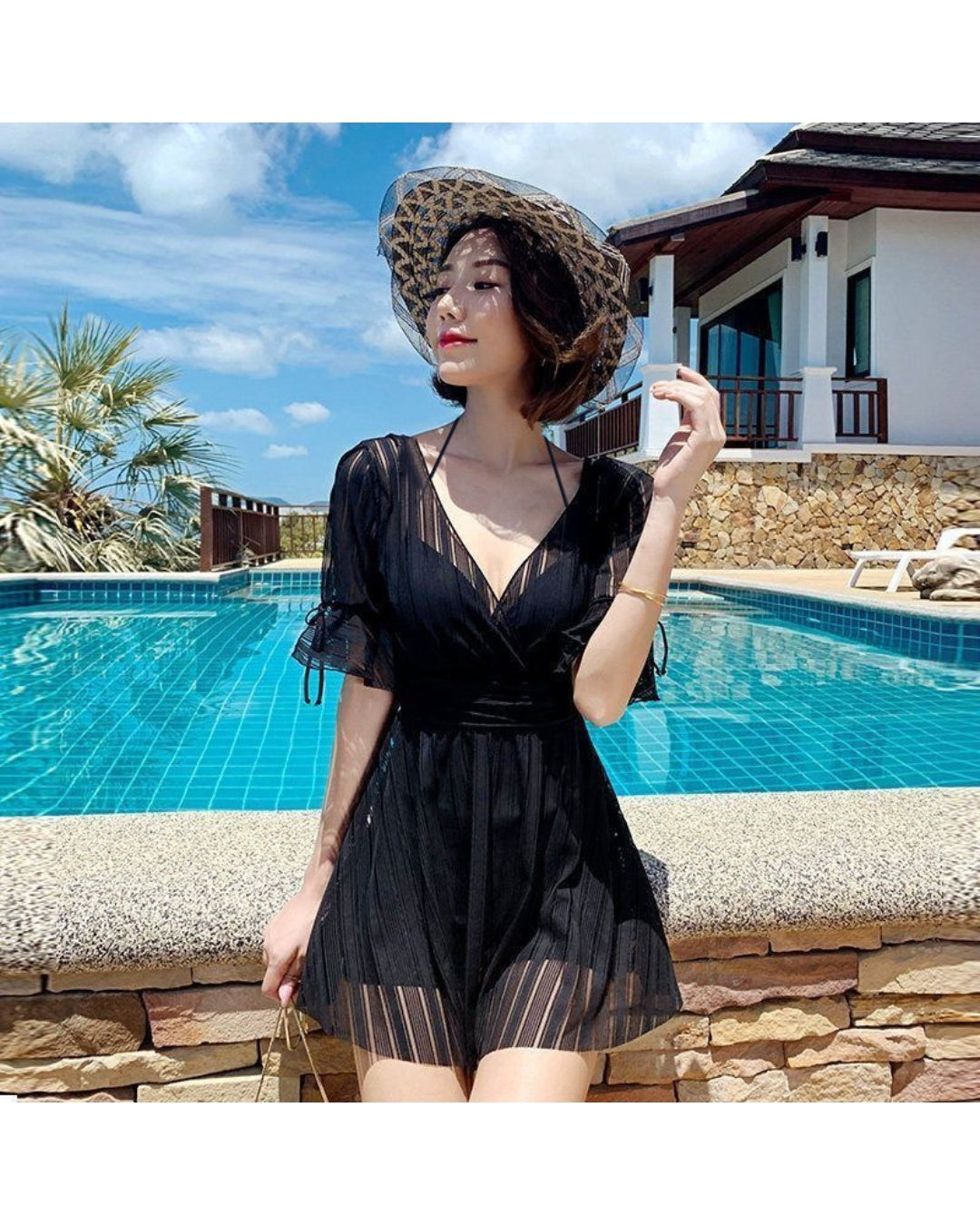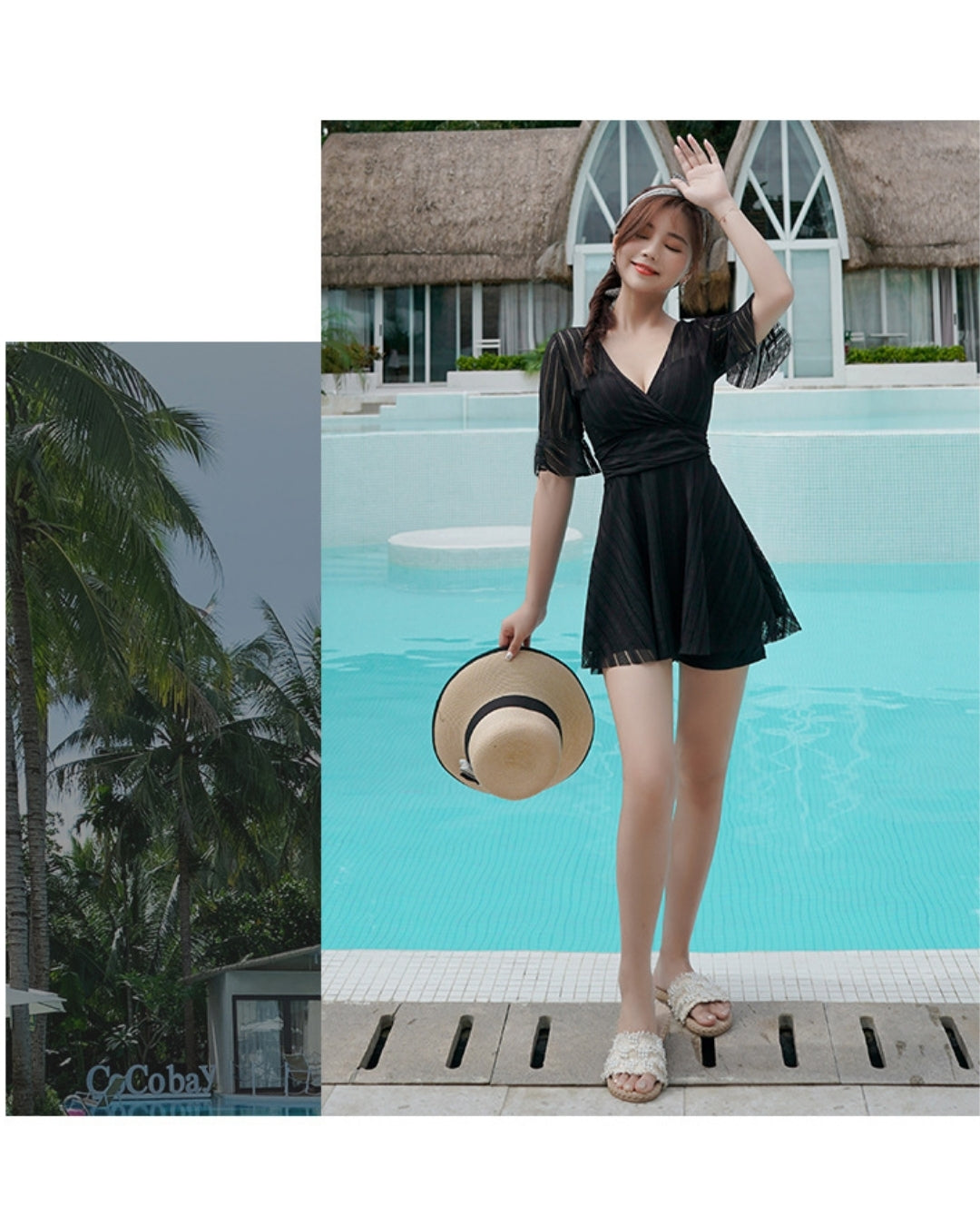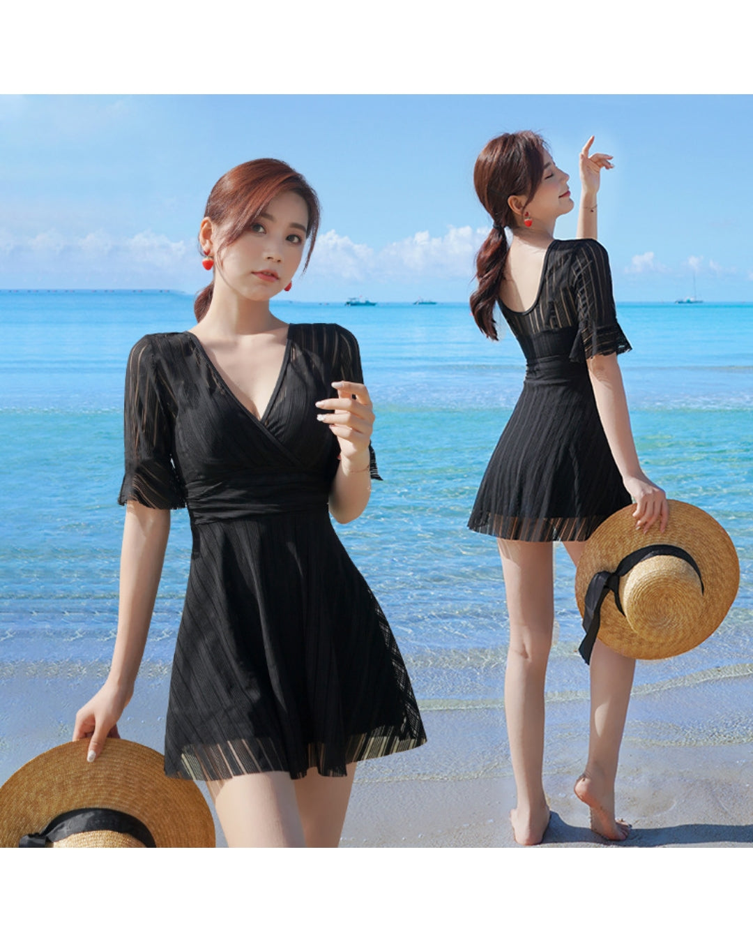 Vネックワンピース水着(体型カバー&着痩せ効果)