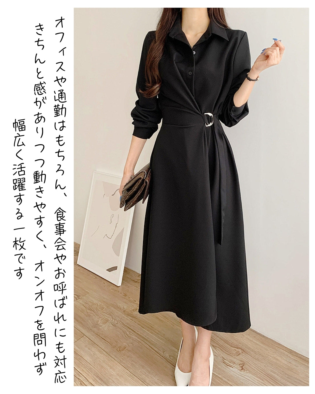 このワンピ、ほんとに“神シルエット”です😍 ウエストのDカンベルトが自然に体のラインを拾ってくれるから、脚長に見えるしスタイルよく見えるのが嬉しい!フォーマルからデイリーまで、どんなシーンもカバーできる万能さはさすが。褒められ率めちゃ高いです💖