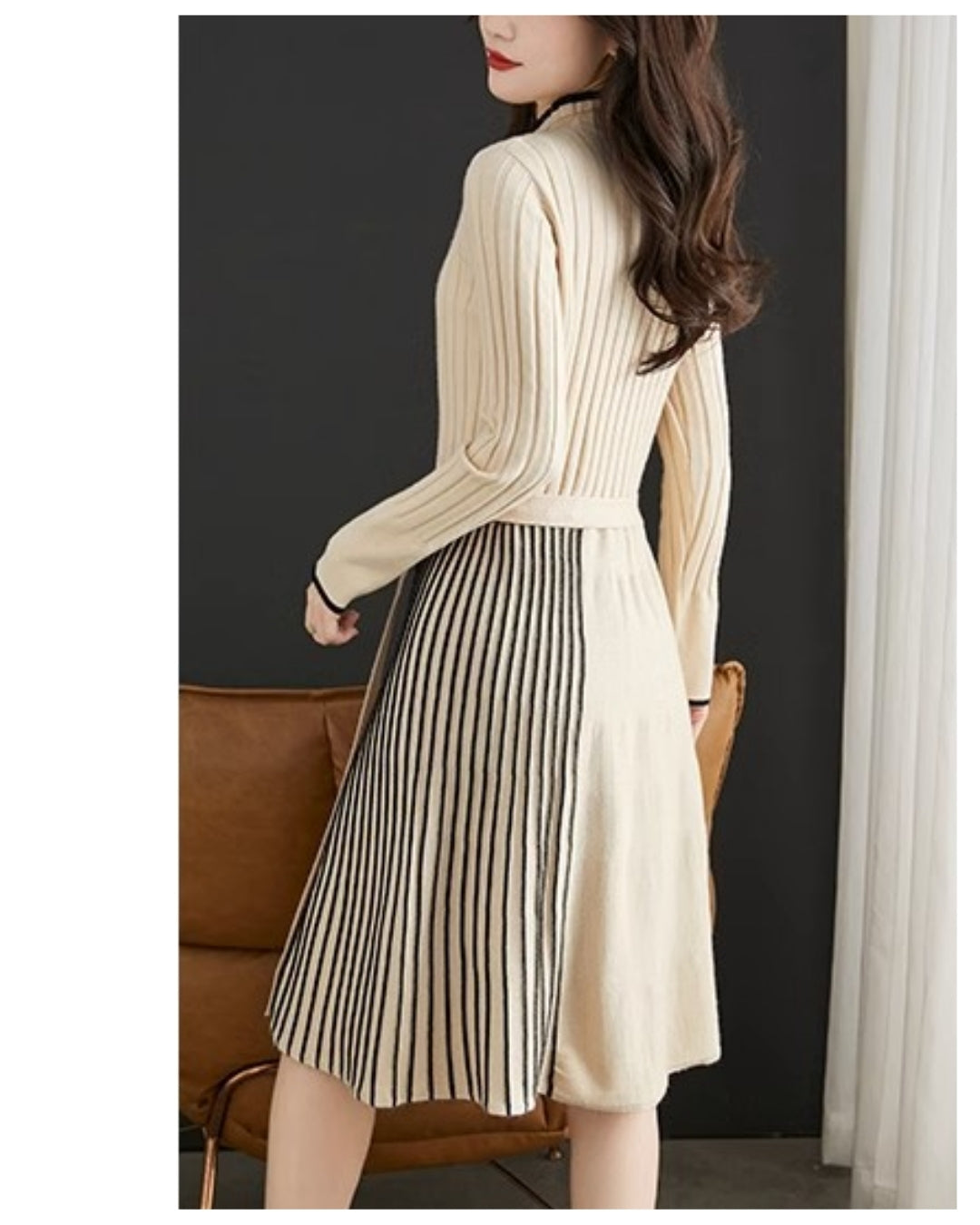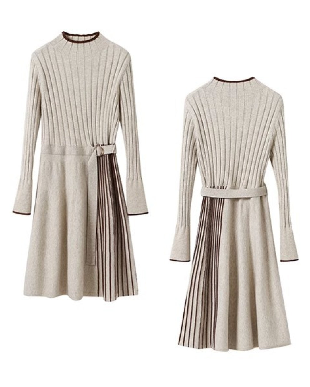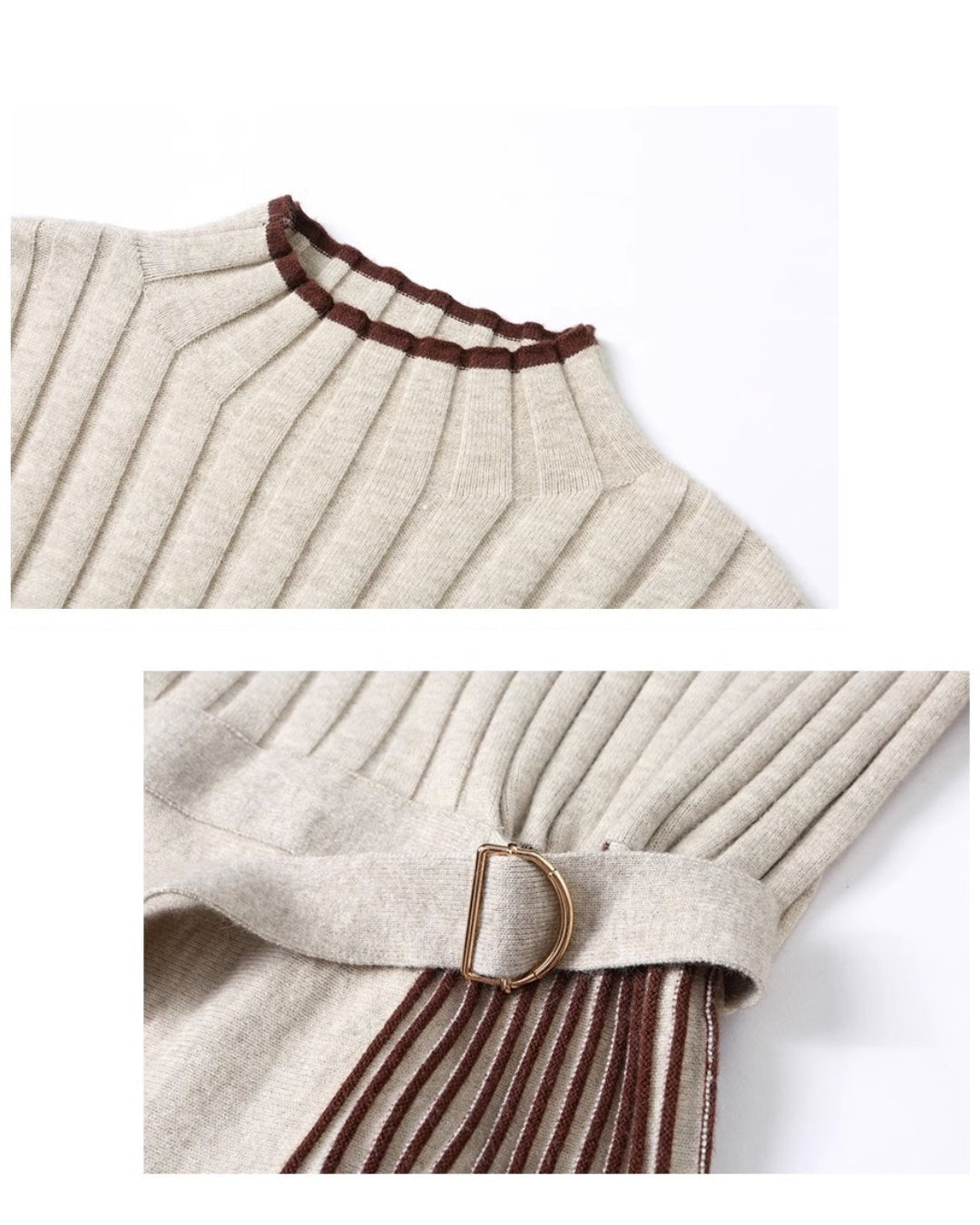 🥇リブ×プリーツ切替の上品ミディ丈ワンピース👗