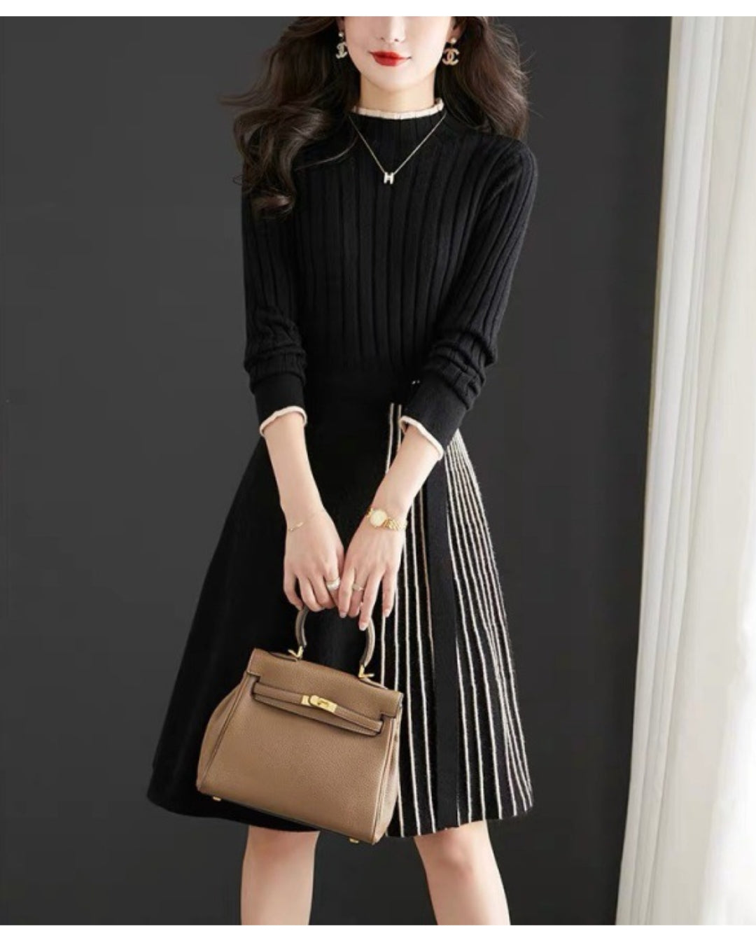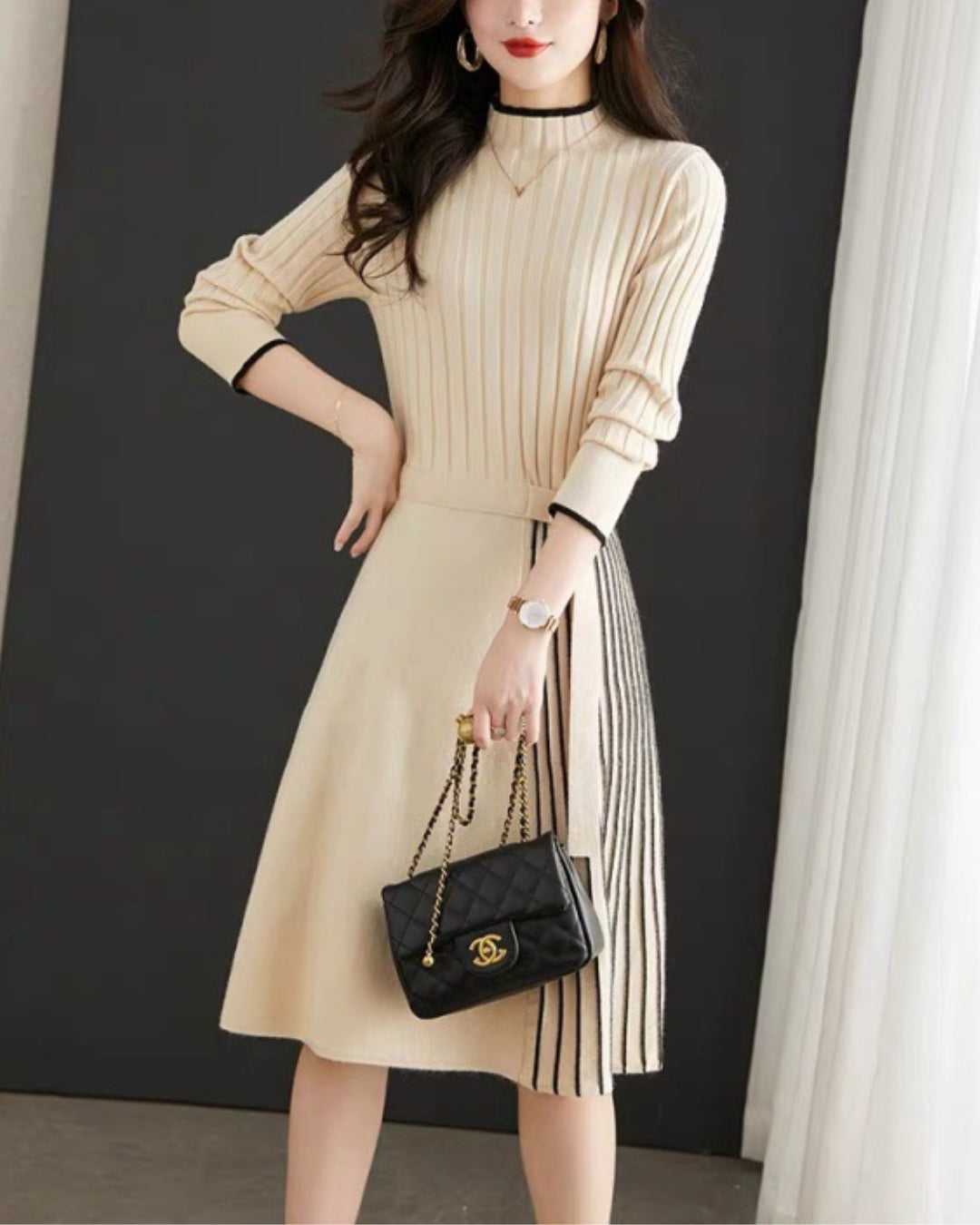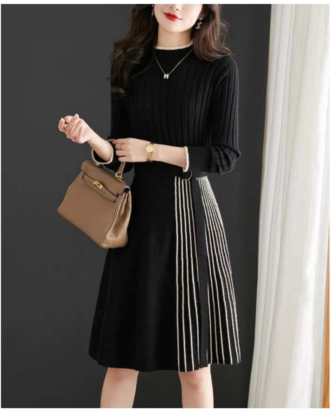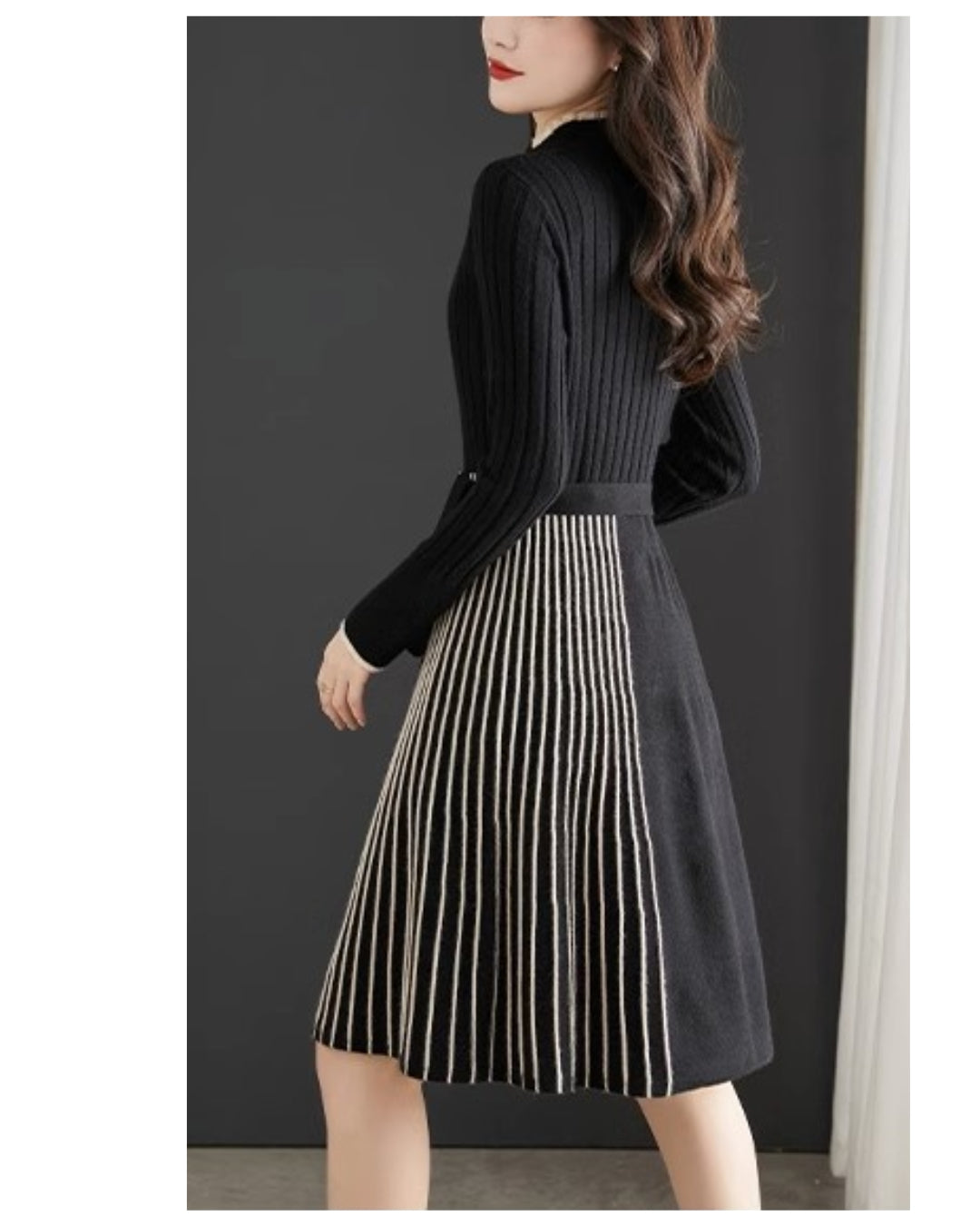 🥇リブ×プリーツ切替の上品ミディ丈ワンピース👗