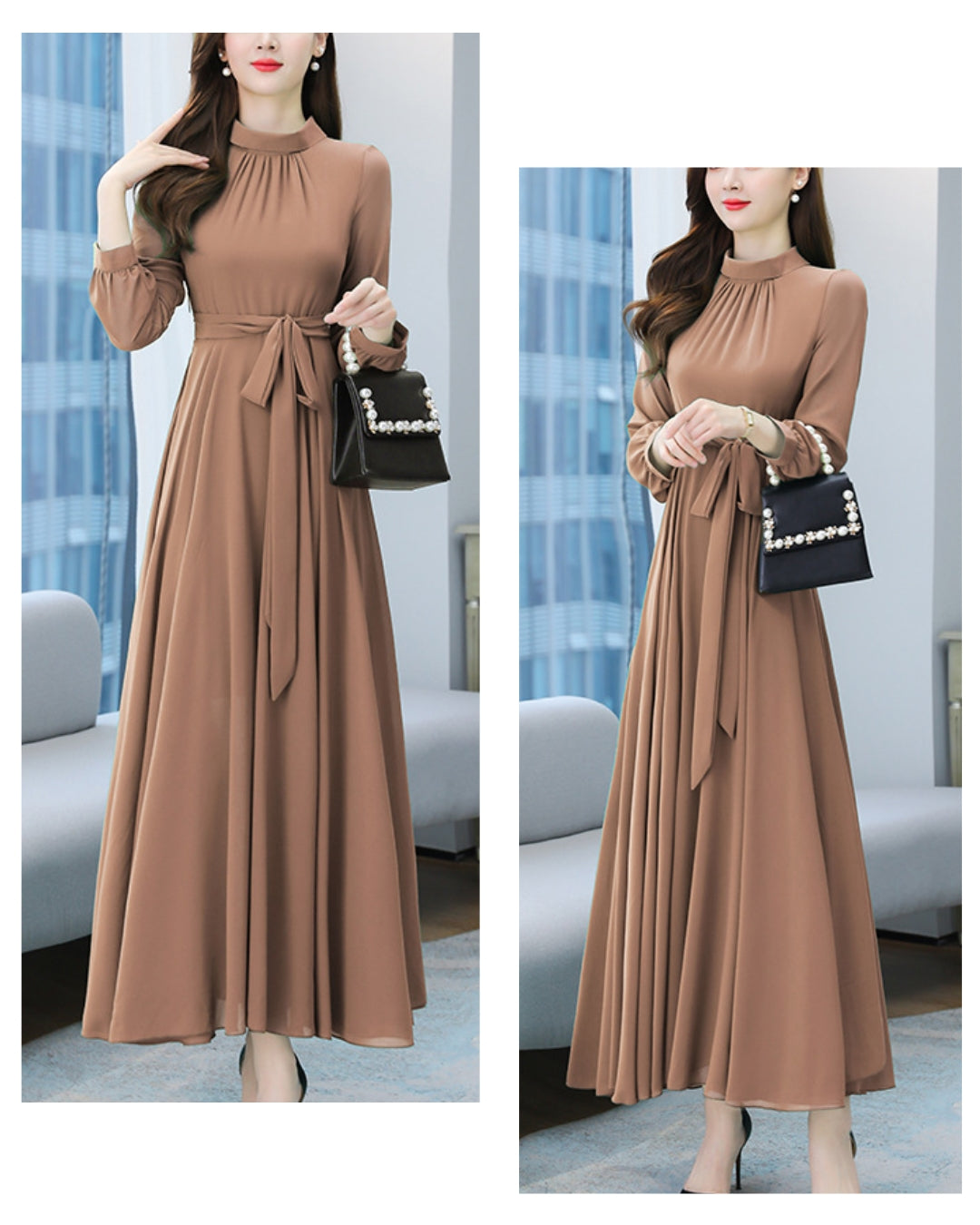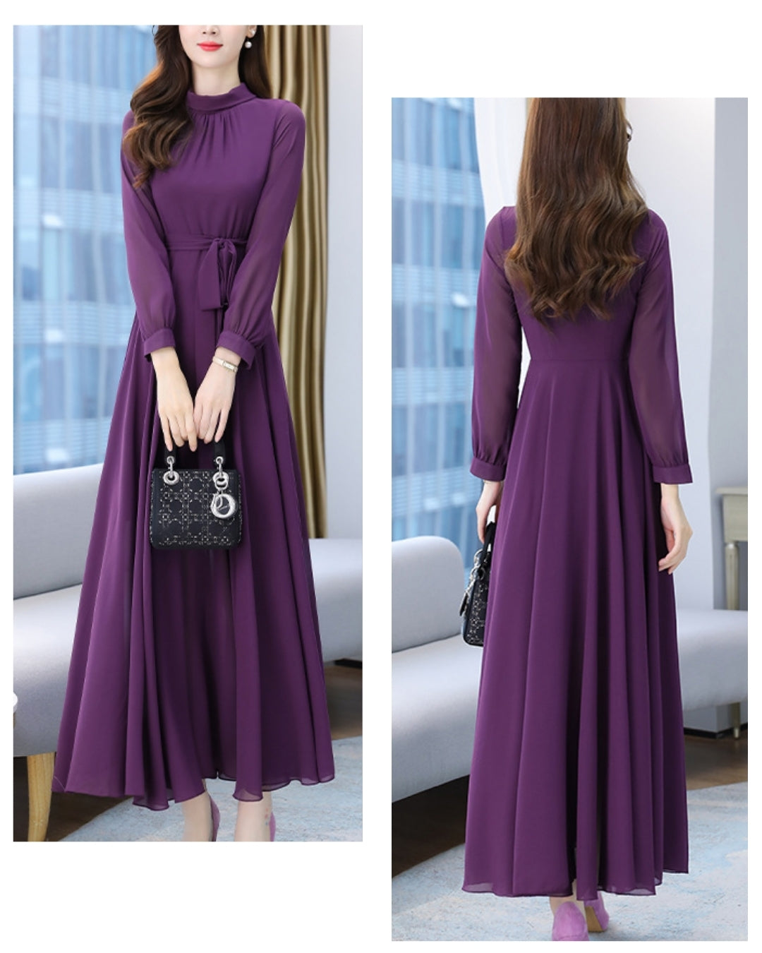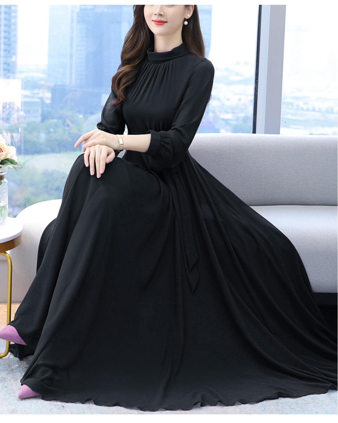 ロングシフォンワンピース【静かな華やぎを添える上品シルエット】
