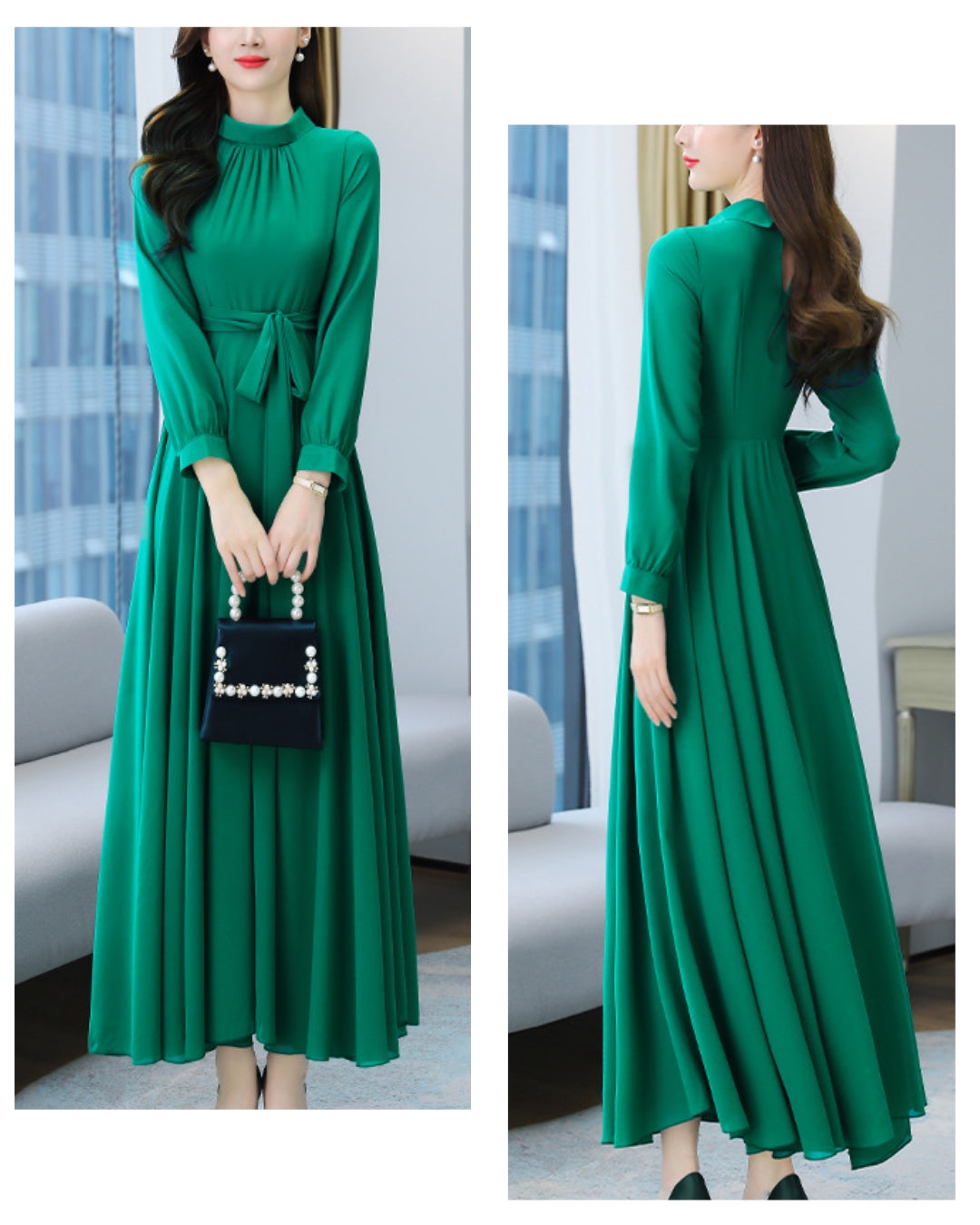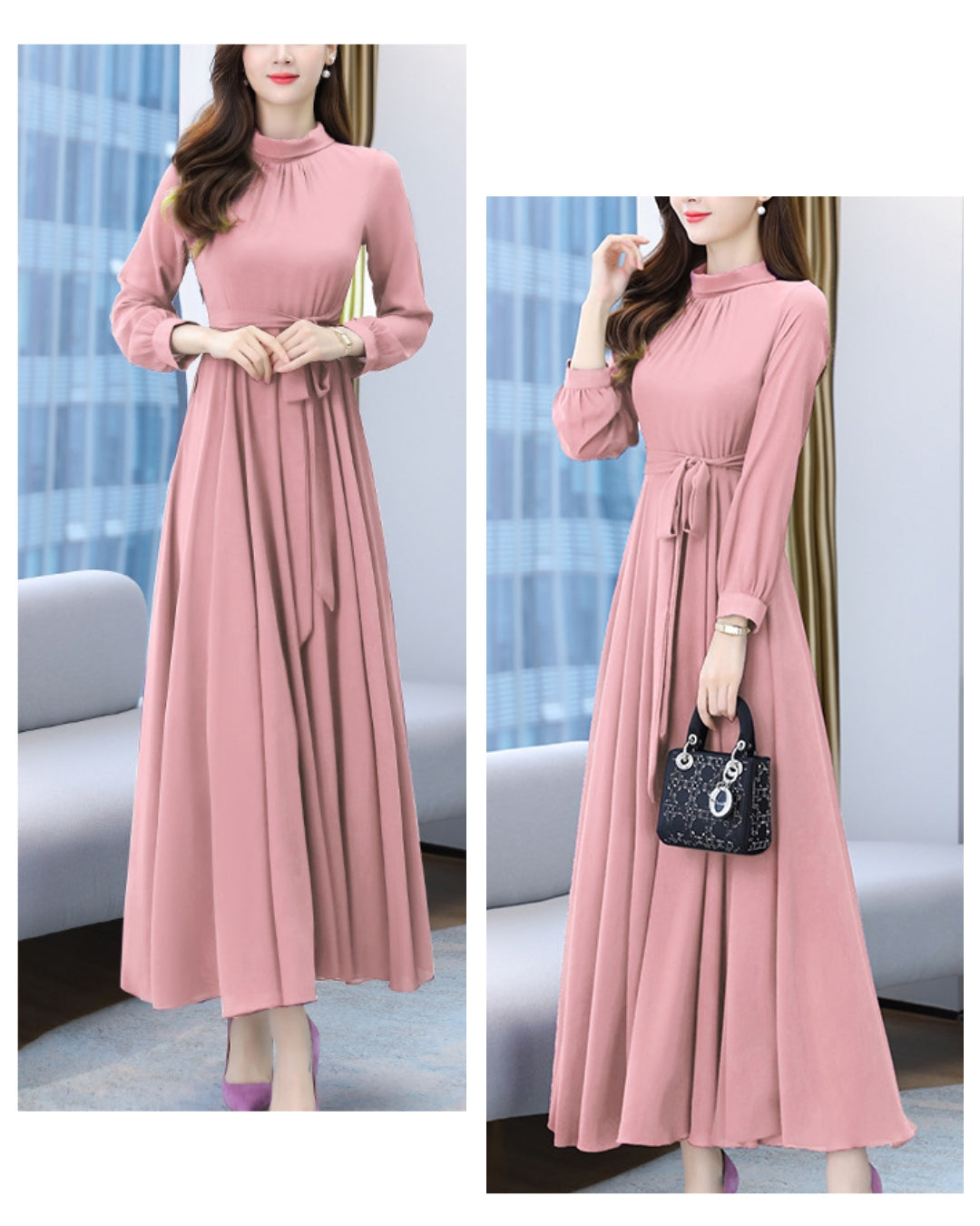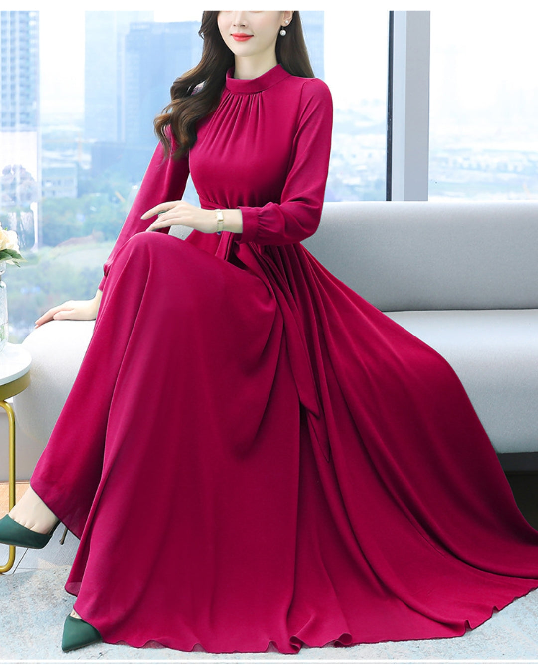 ロングシフォンワンピース【静かな華やぎを添える上品シルエット】