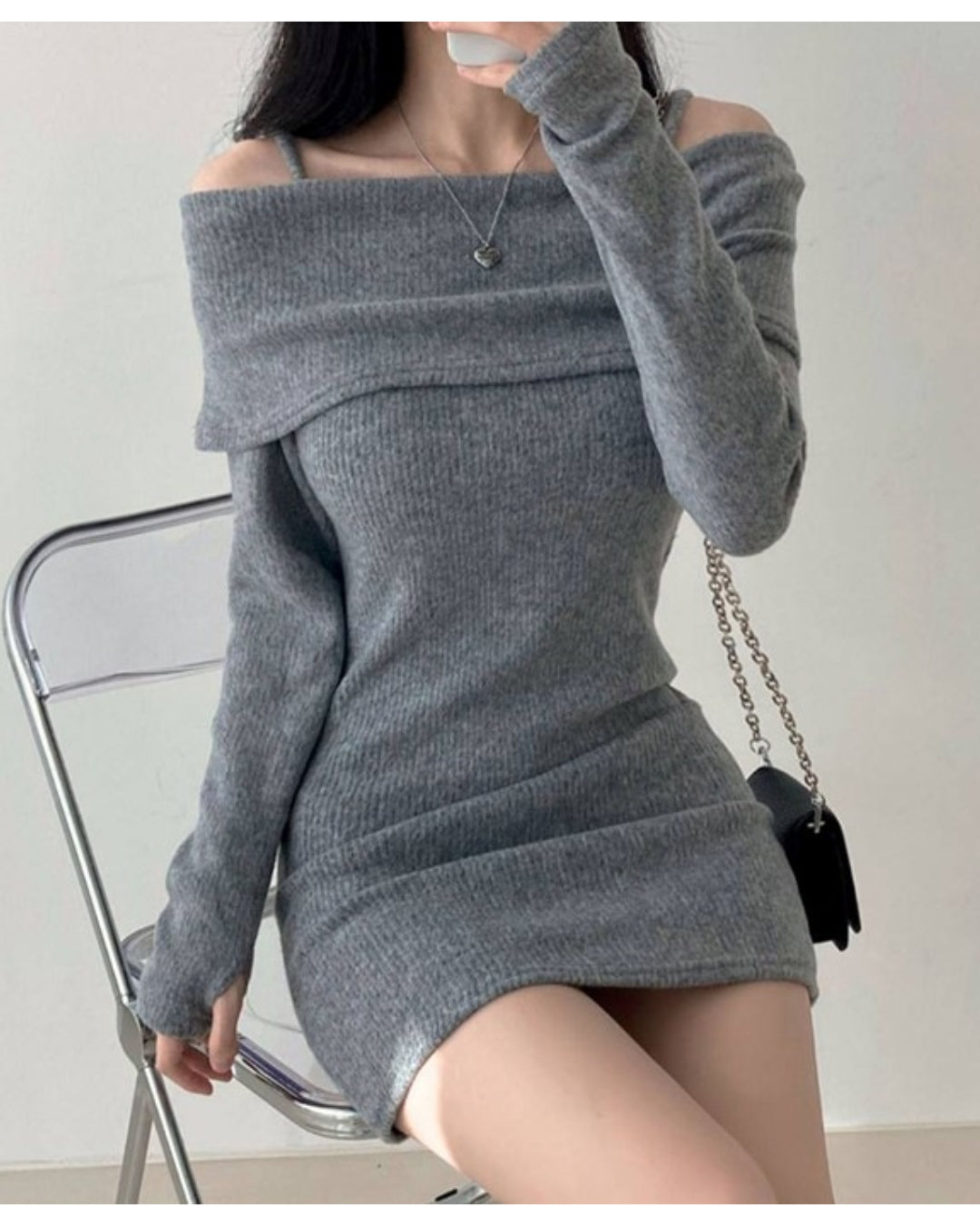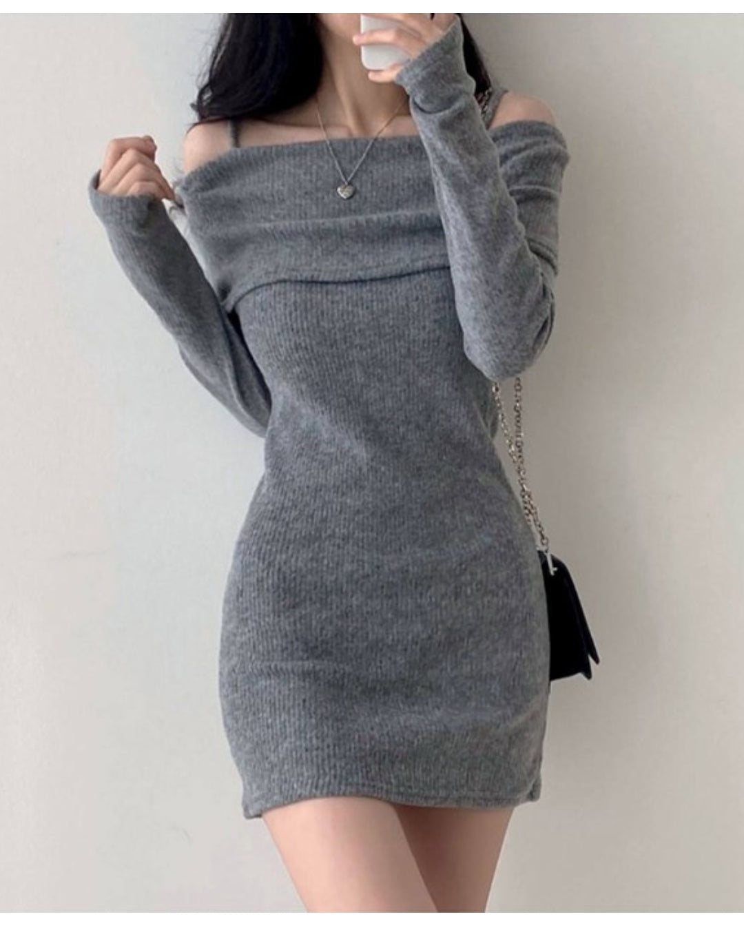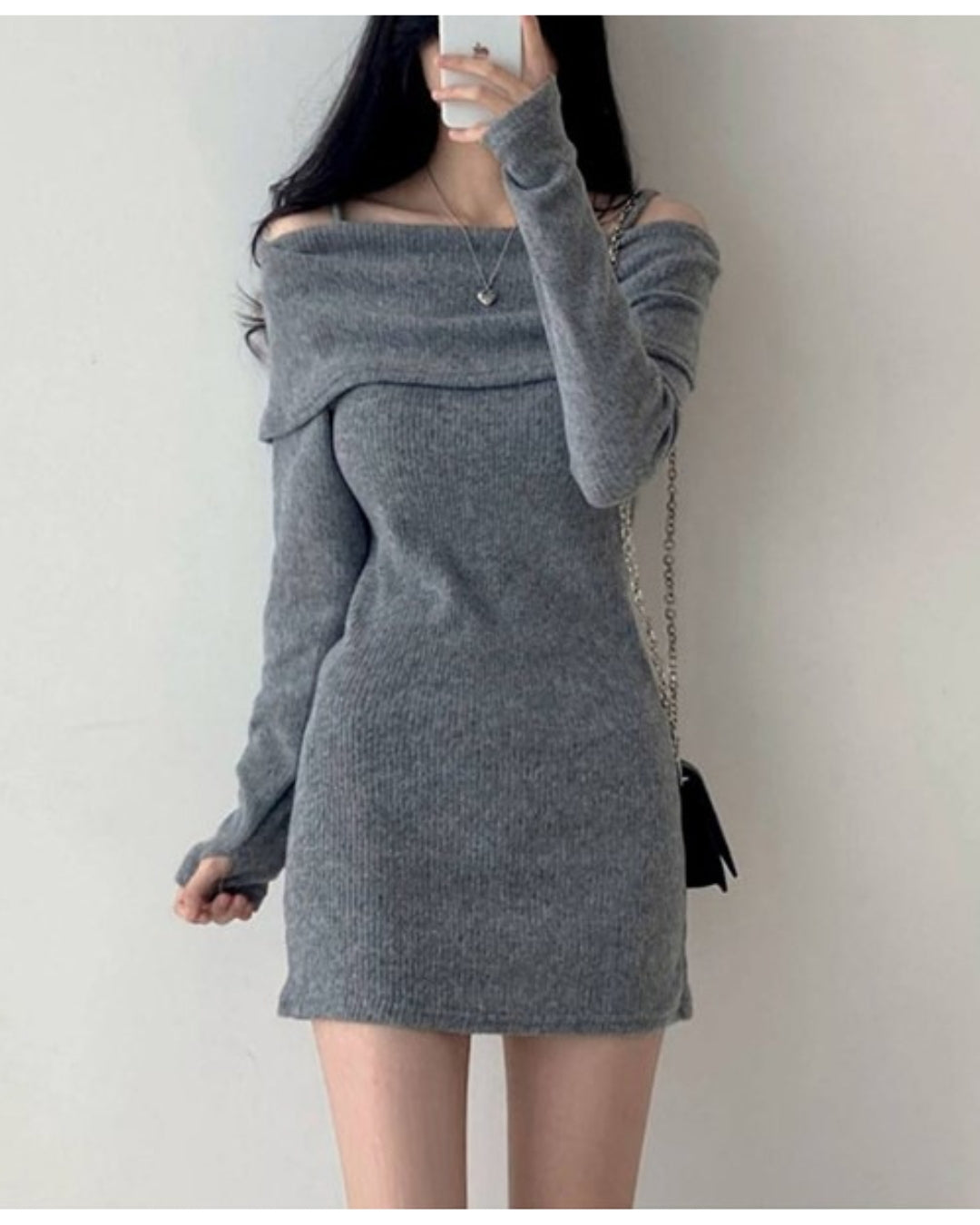 オフショルダーニットワンピース【洗練の肌見せで魅せる大人のエレガンス】