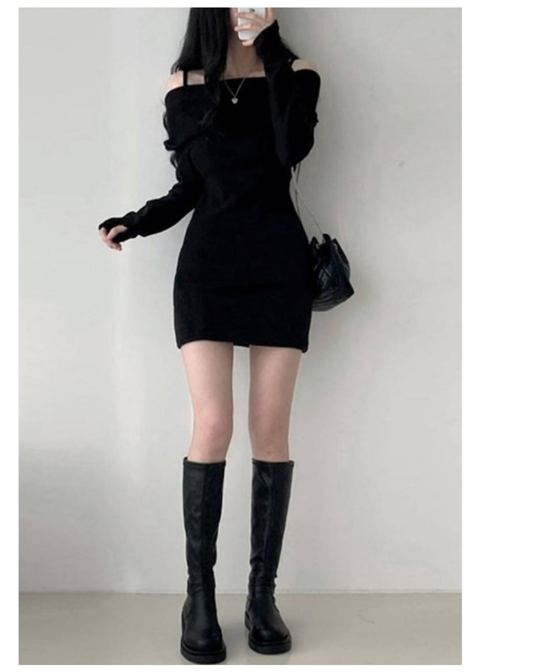 オフショルの絶妙な抜け感が、上品なのにどこかセンシュアル。タイトすぎず、体のラインをきれいに見せてくれるのがポイント。ブーツ合わせで旬の“韓国っぽ”ムードが完成します!