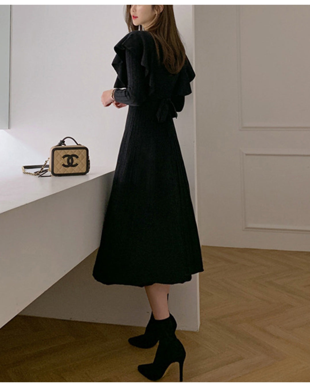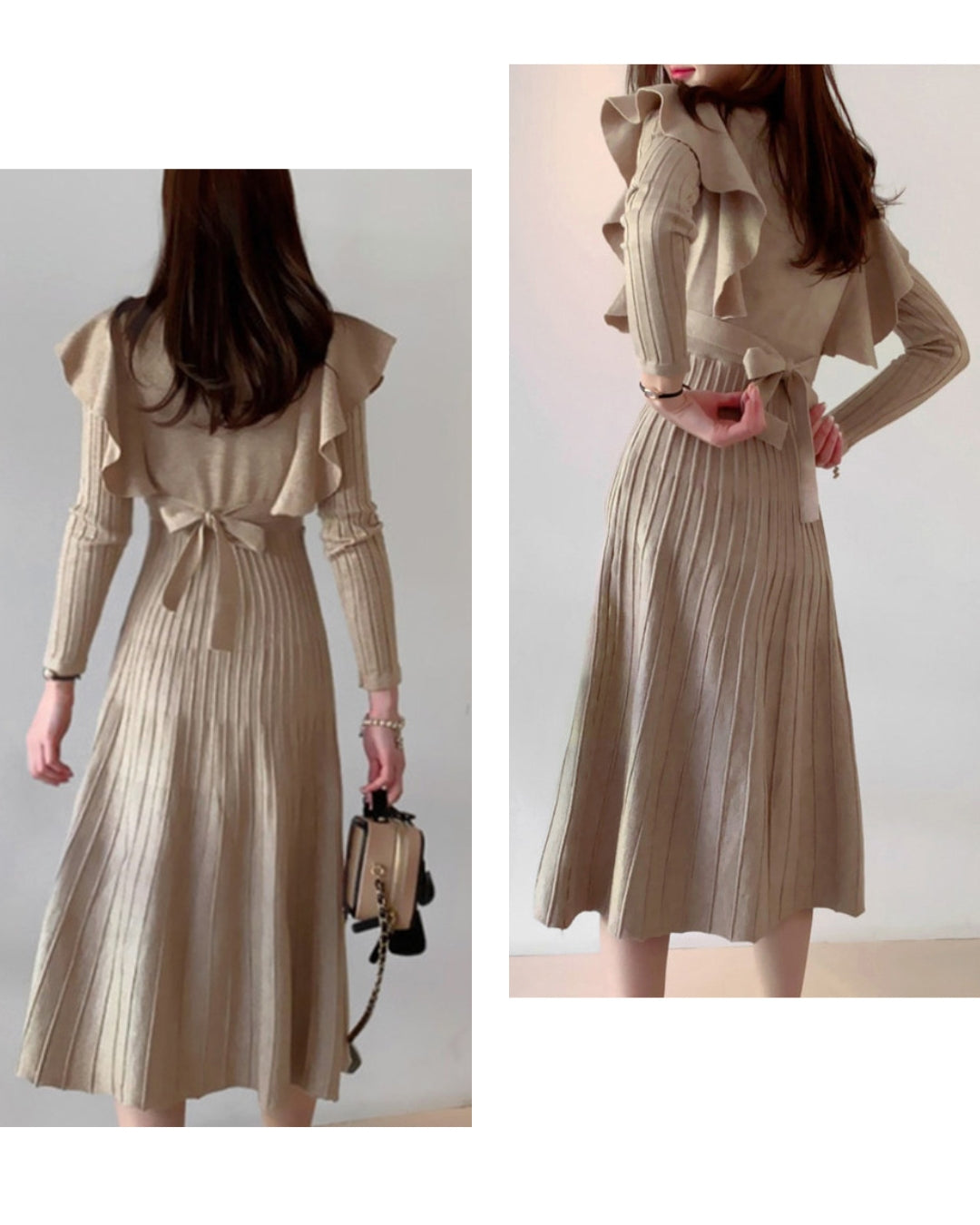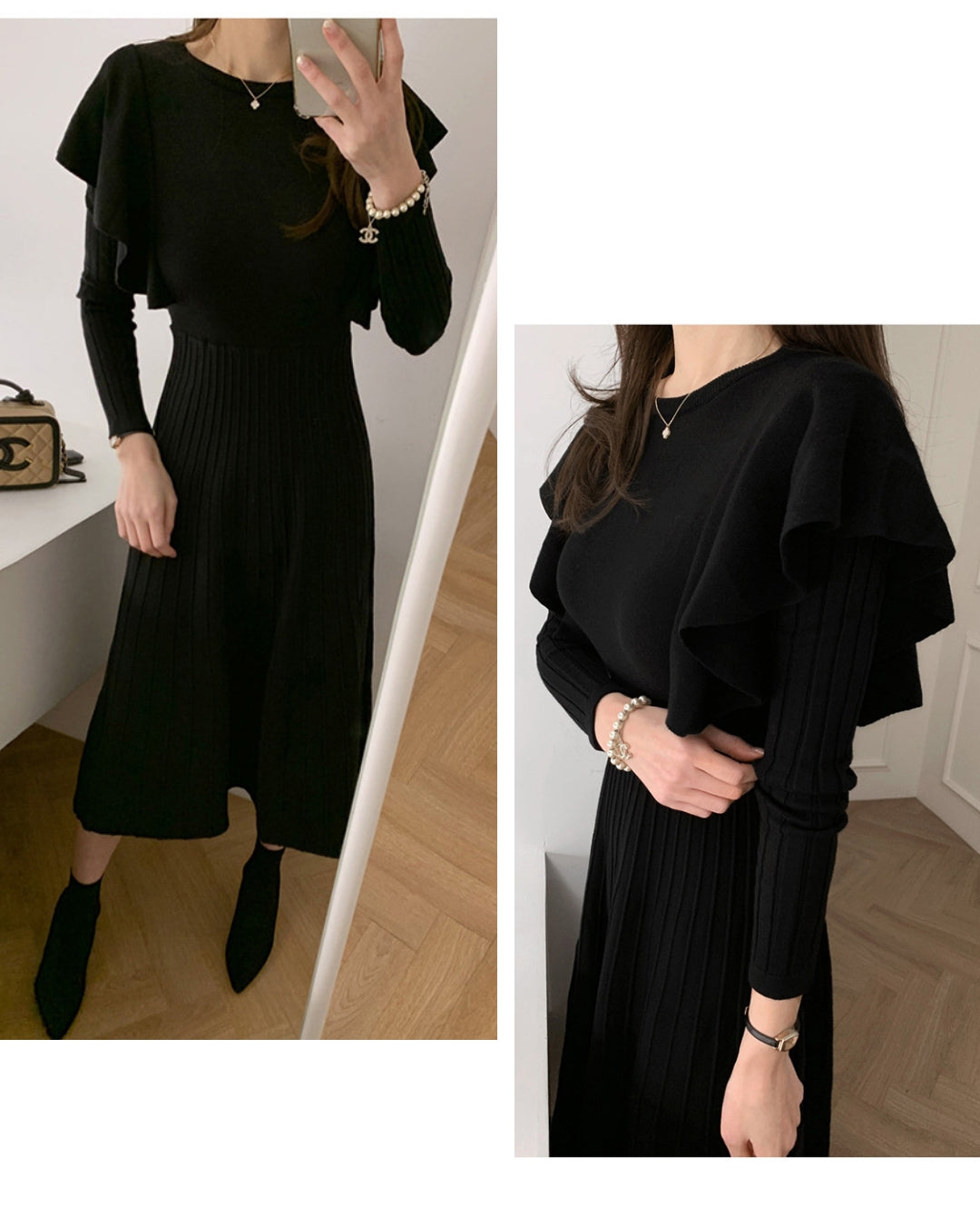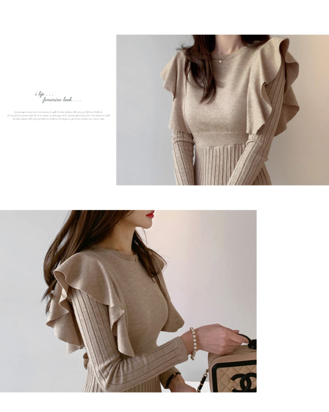 ショルダーフリルニットワンピース【ふんわり肩フリルで魅せる】