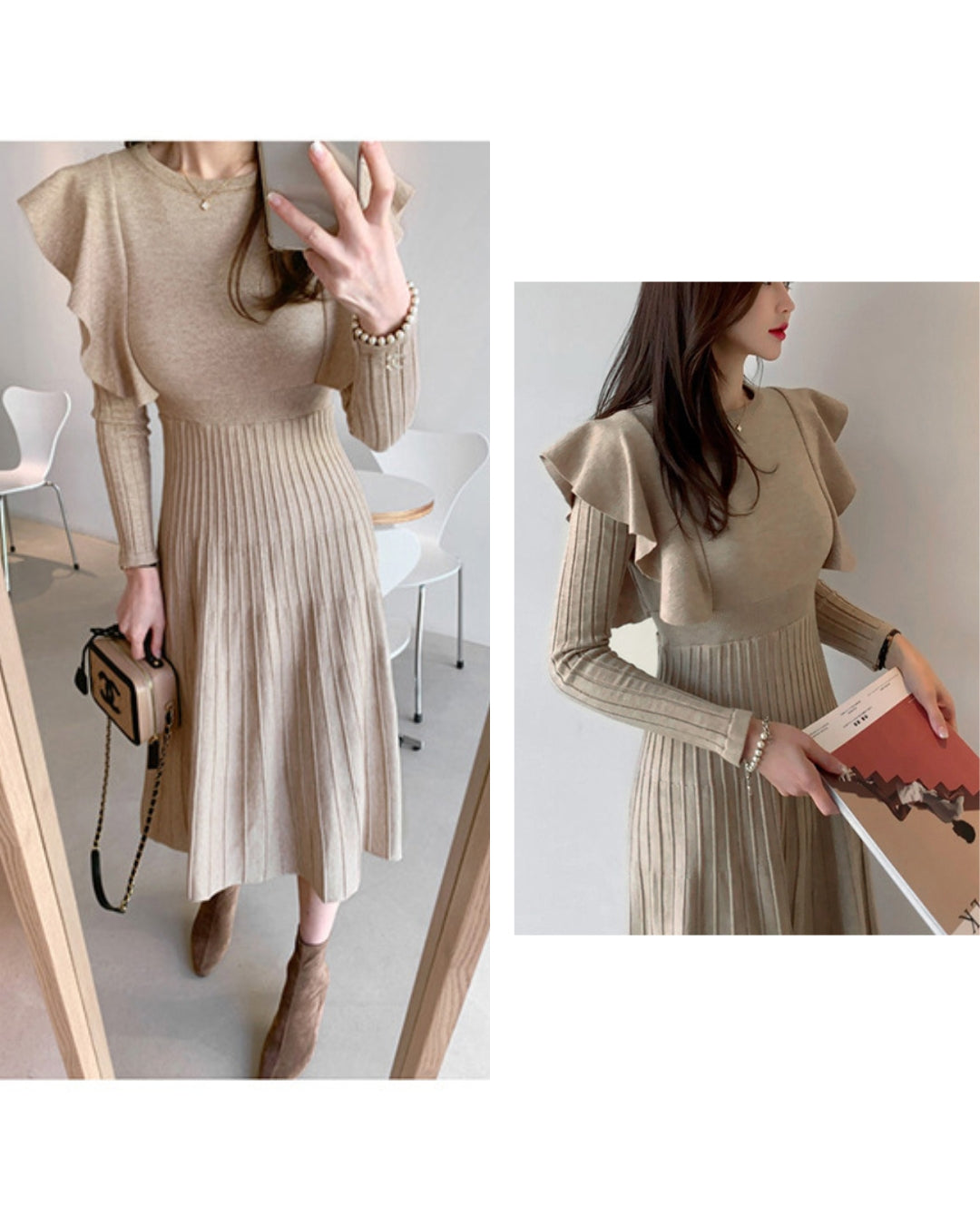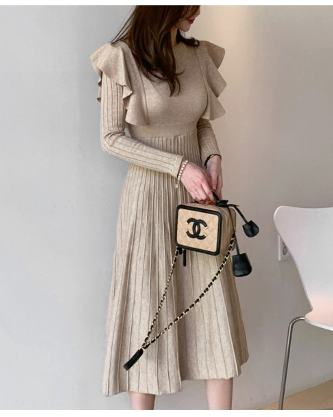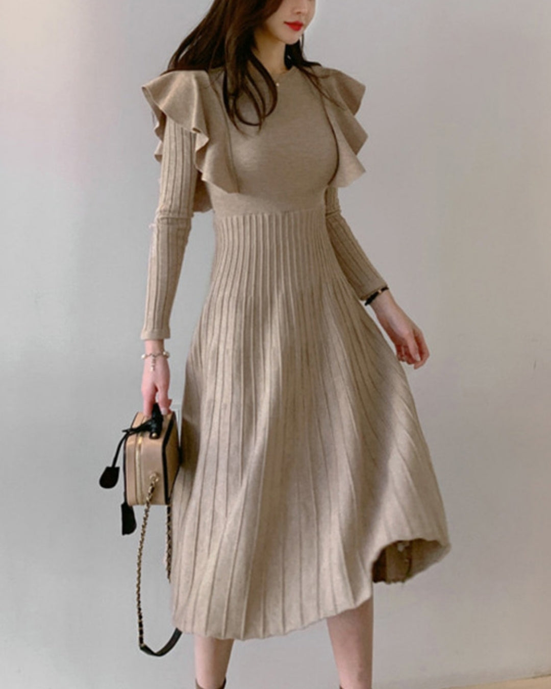 ショルダーフリルニットワンピース【ふんわり肩フリルで魅せる】