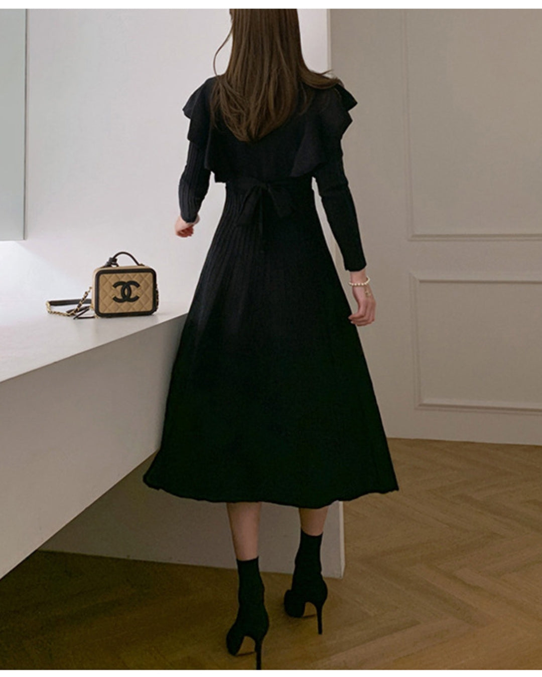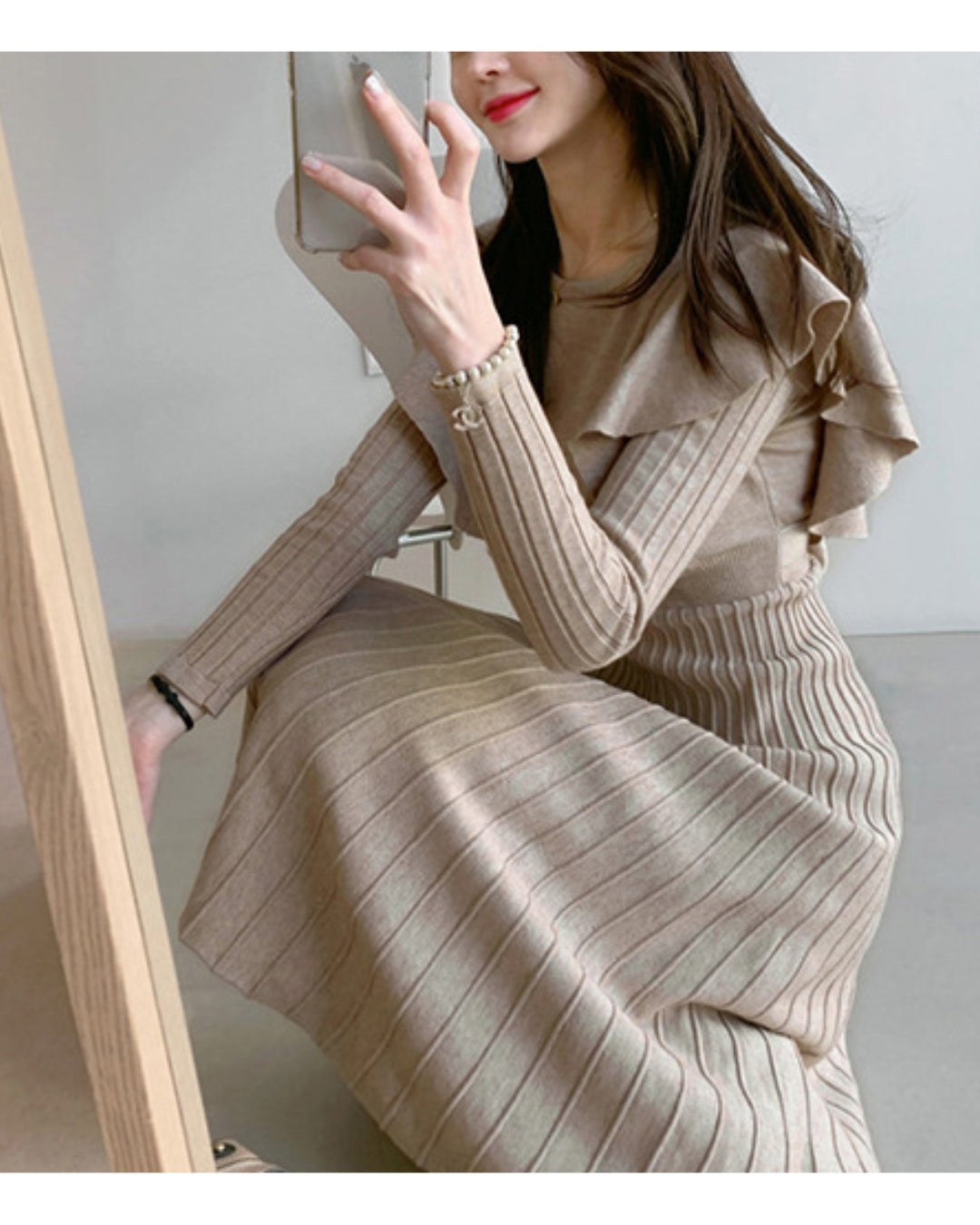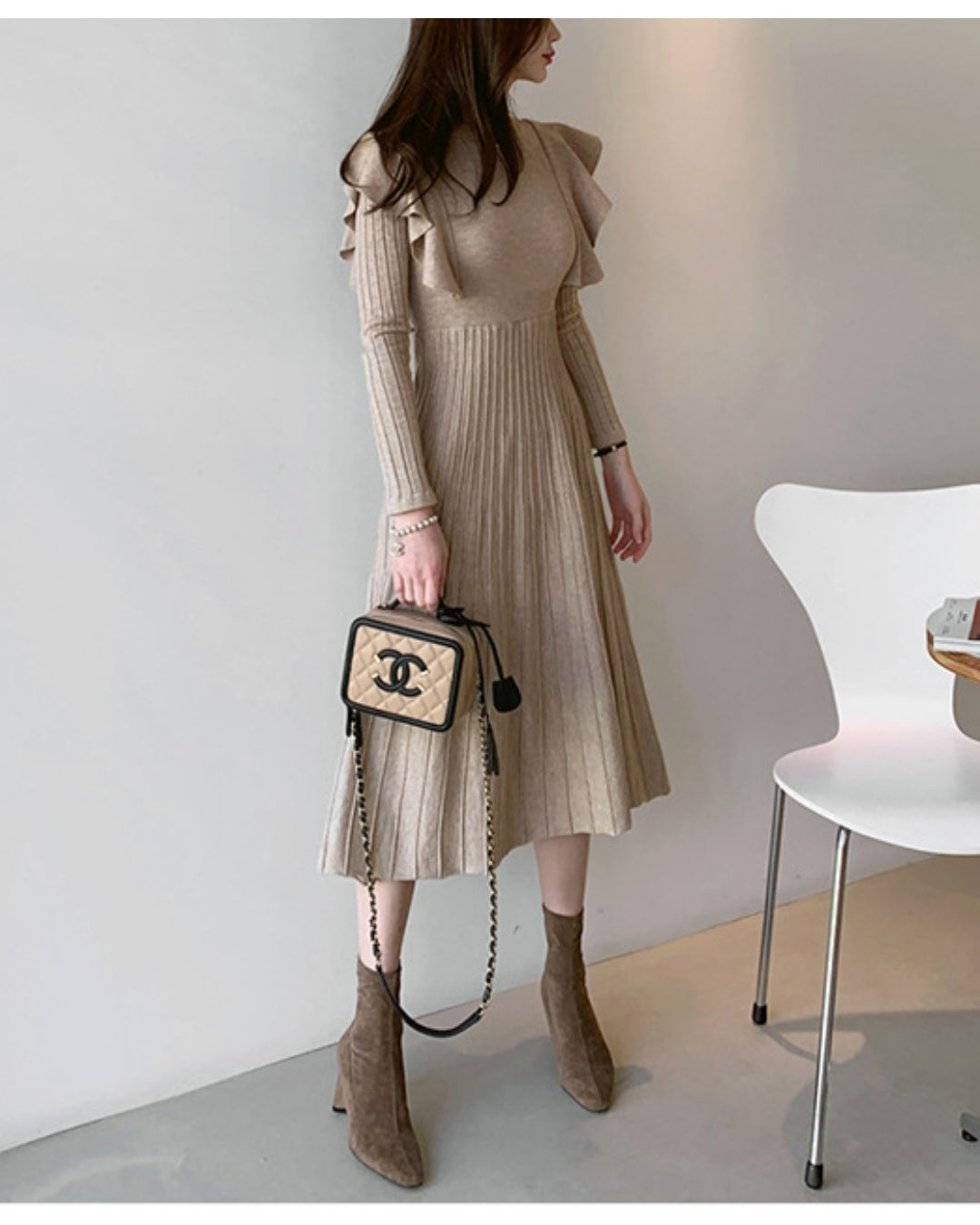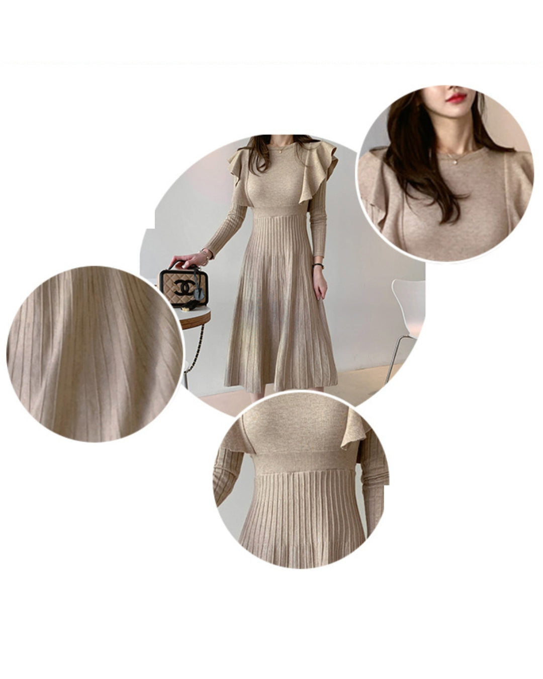 ショルダーフリルニットワンピース【ふんわり肩フリルで魅せる】