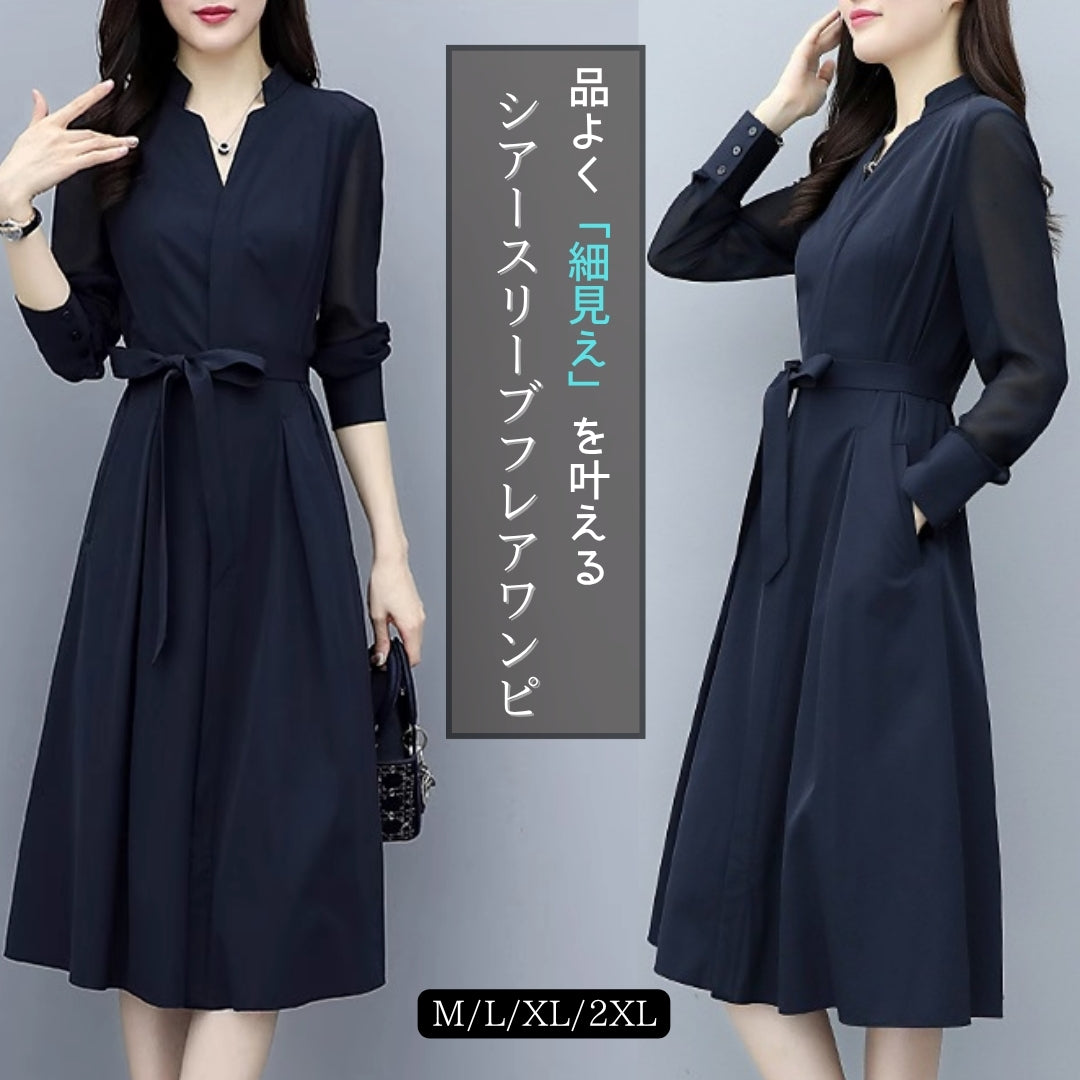 シアースリーブフレアワンピース【品よく細見えを叶える】
