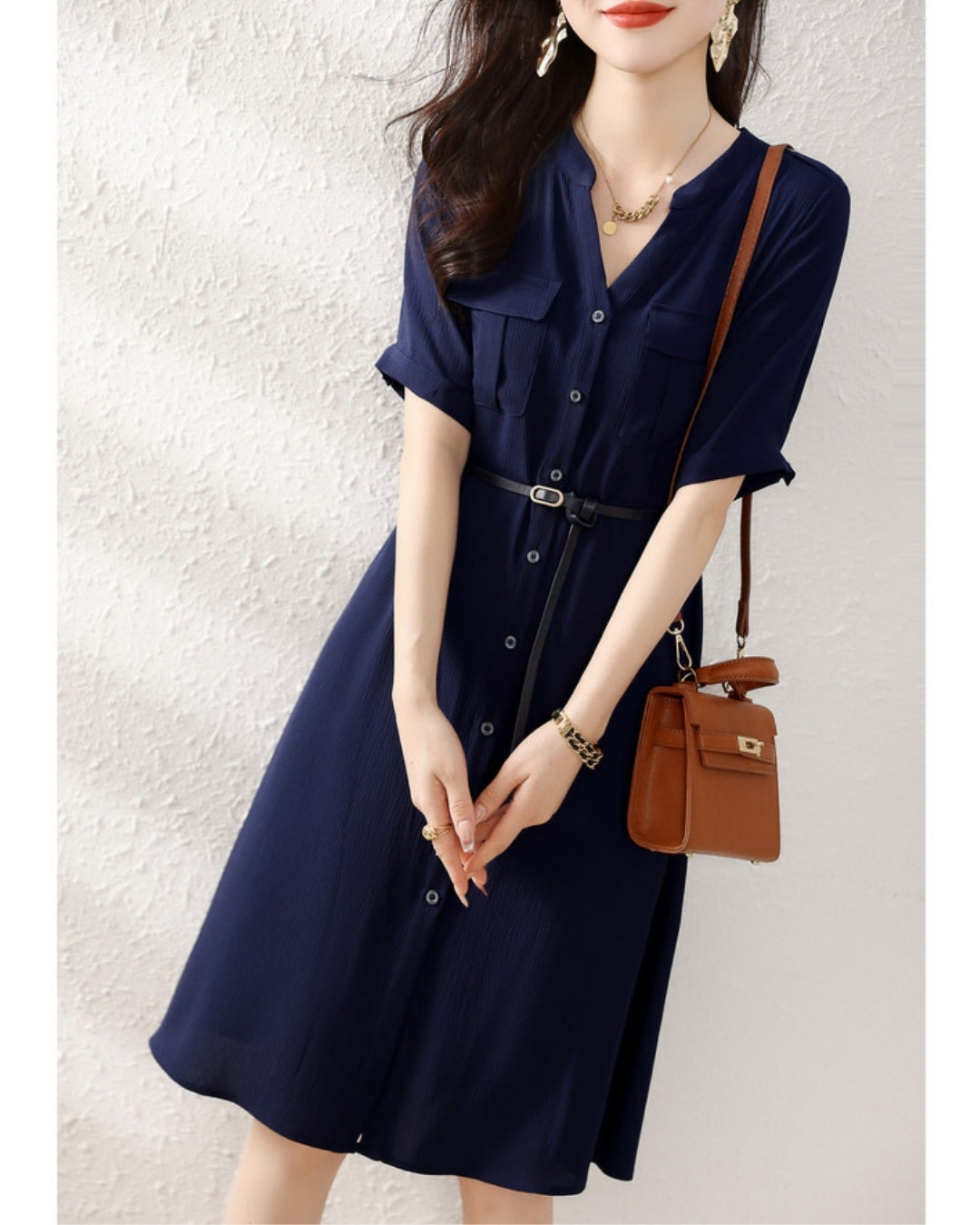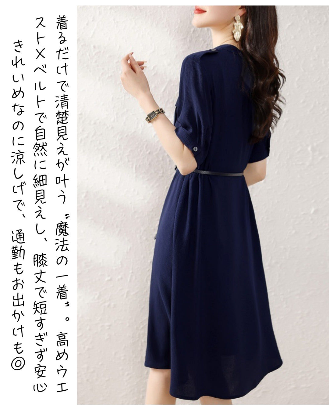 これ、着た瞬間に“きちんと美人”が完成するワンピです👏✨ スキッパー襟で首元がスッキリ見えて、前開きデザインだから清潔感もばっちり💎 さらに高めウエスト×ベルトでスタイルがめちゃくちゃ良く見えるんです!「今日なんか細く見えない?」って言われる率高め😍