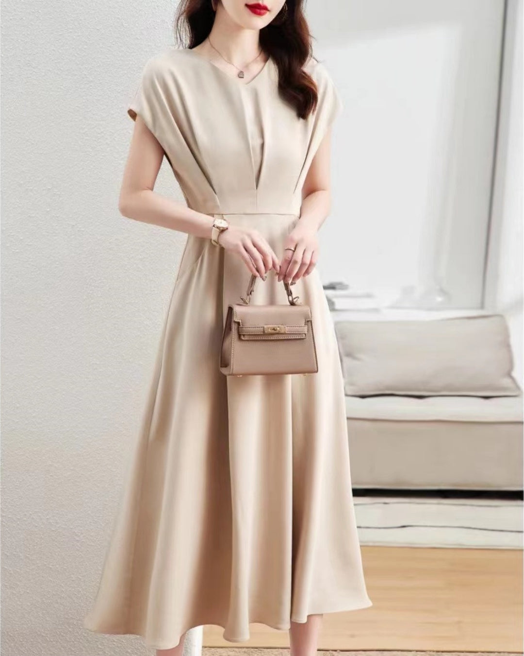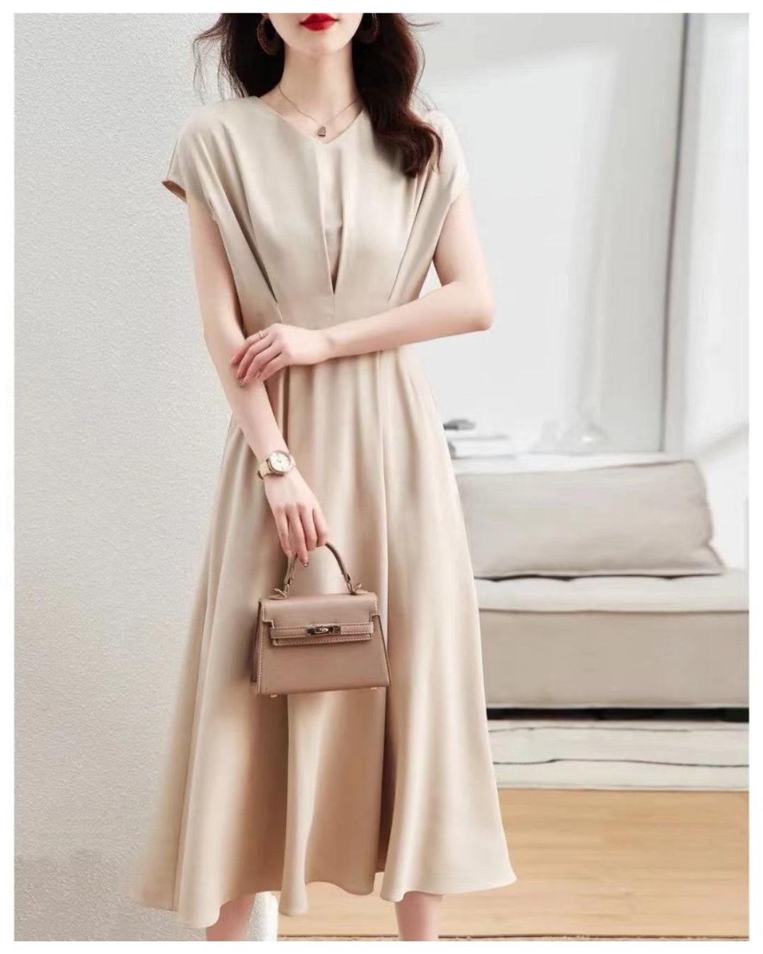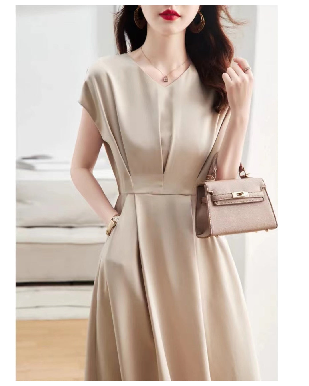 Vネック×ハイウエスト切替で、着るだけでスタイルが整う大人の上品ワンピ。通勤や学校行事はもちろん、ホテルランチや食事会まで“失敗しない一枚”として頼れます🌿