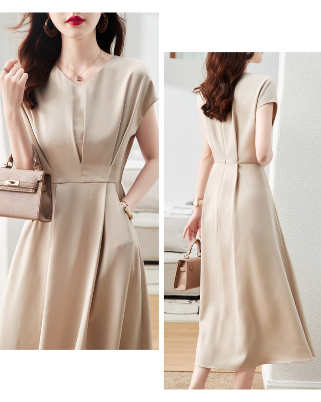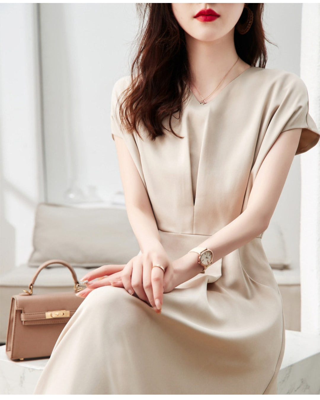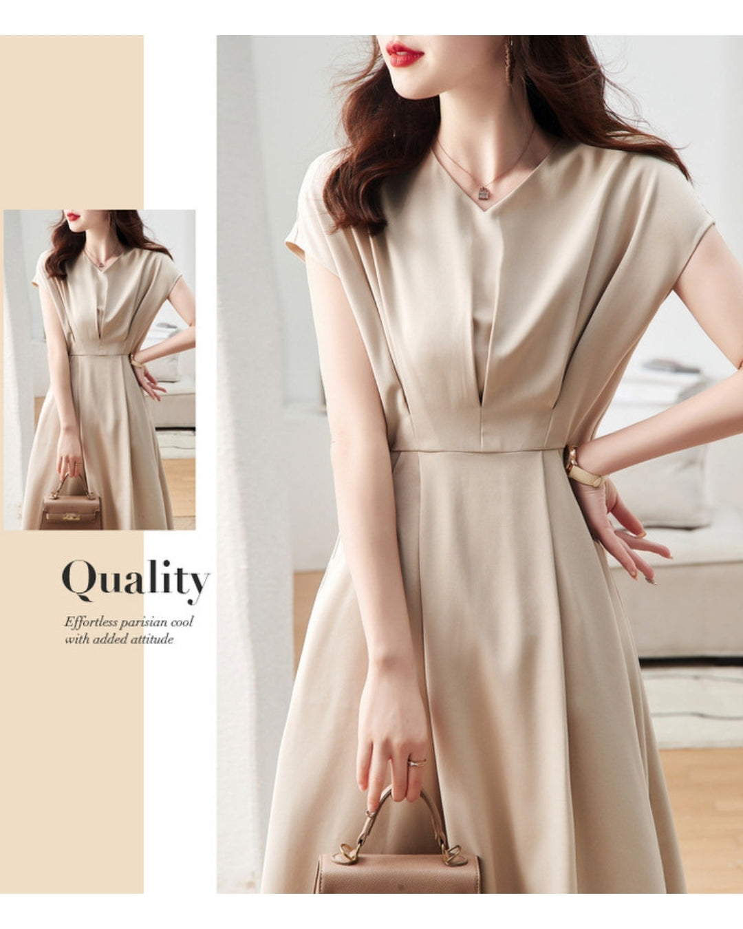 Vネック×ハイウエスト切替で、着るだけでスタイルが整う大人の上品ワンピ。通勤や学校行事はもちろん、ホテルランチや食事会まで“失敗しない一枚”として頼れます🌿