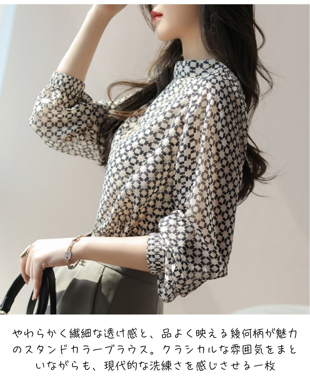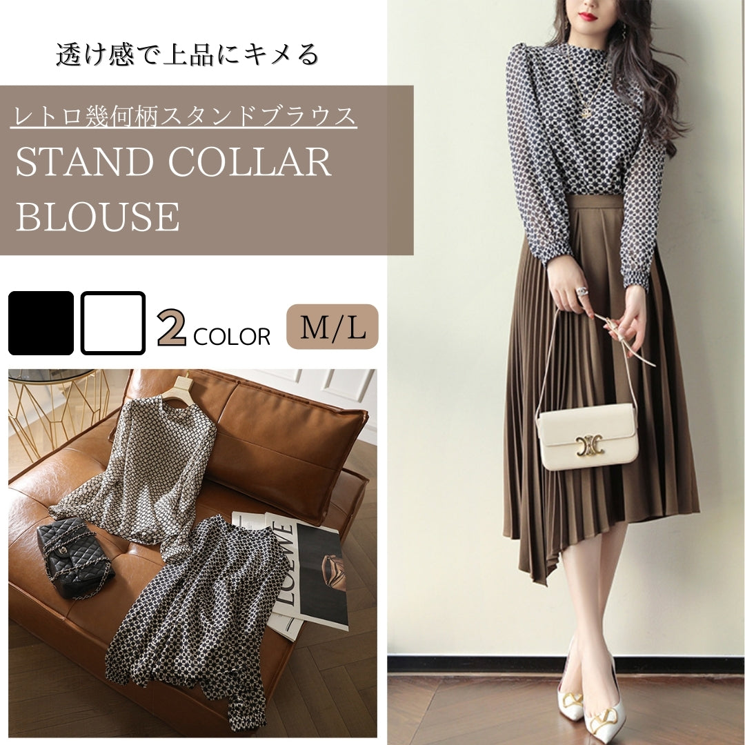 幾何柄スタンドカラーブラウス【上品映え&きれいめ】