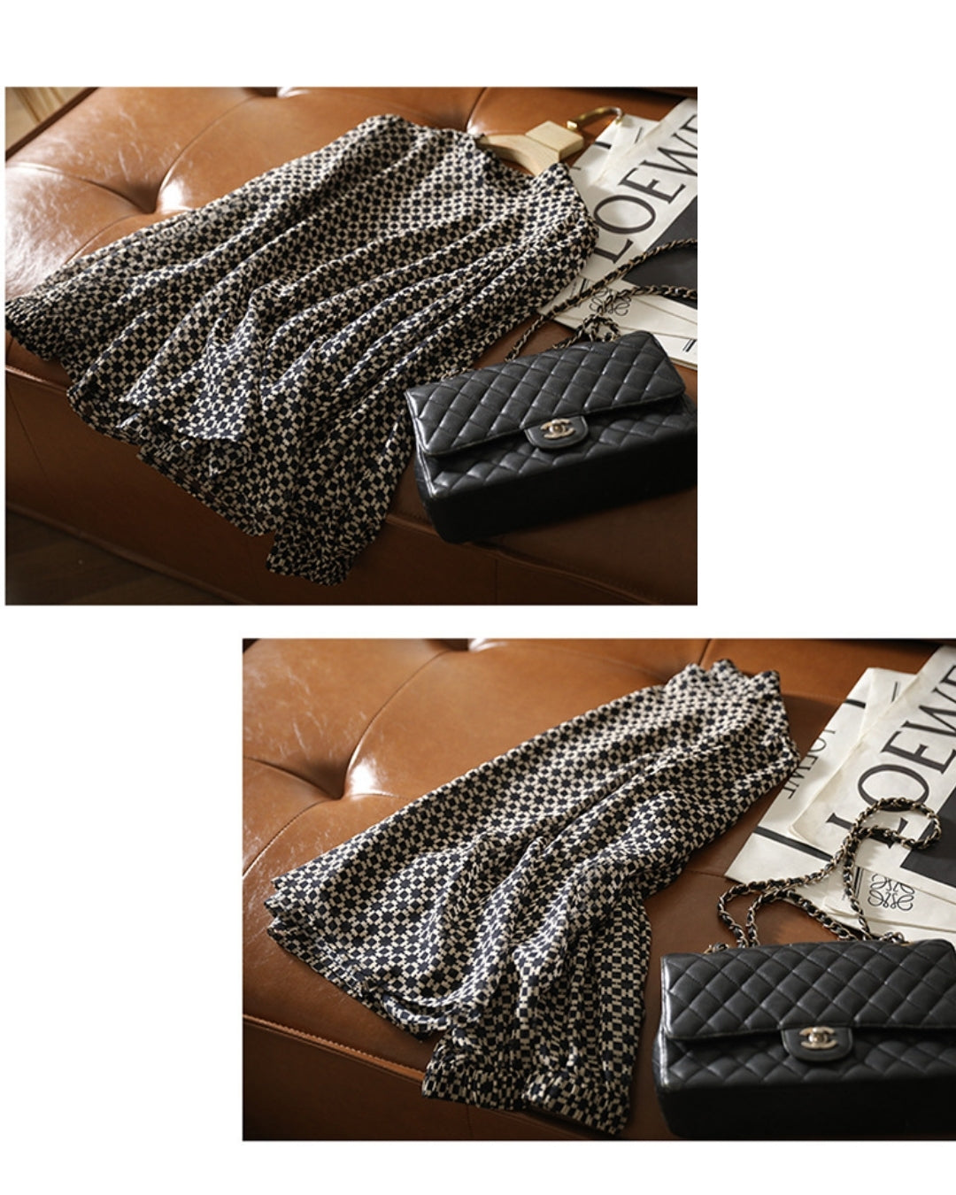 懐かしさと現代性が共存する幾何学パターン。モノトーン配色で派手になりすぎず、大人の女性にぴったりな上品さを演出します。