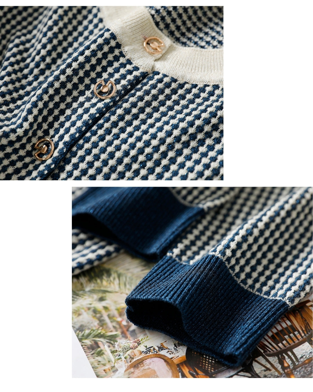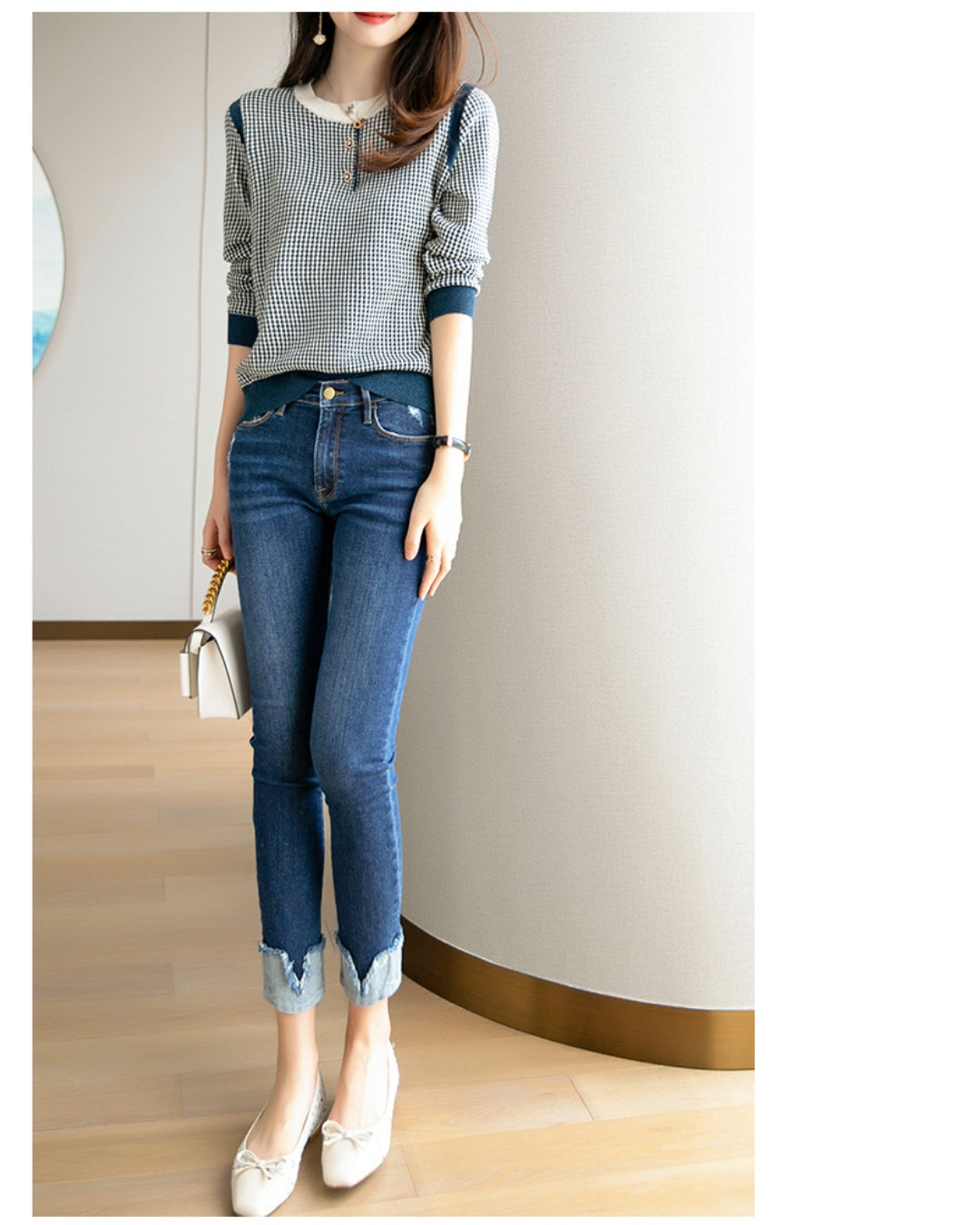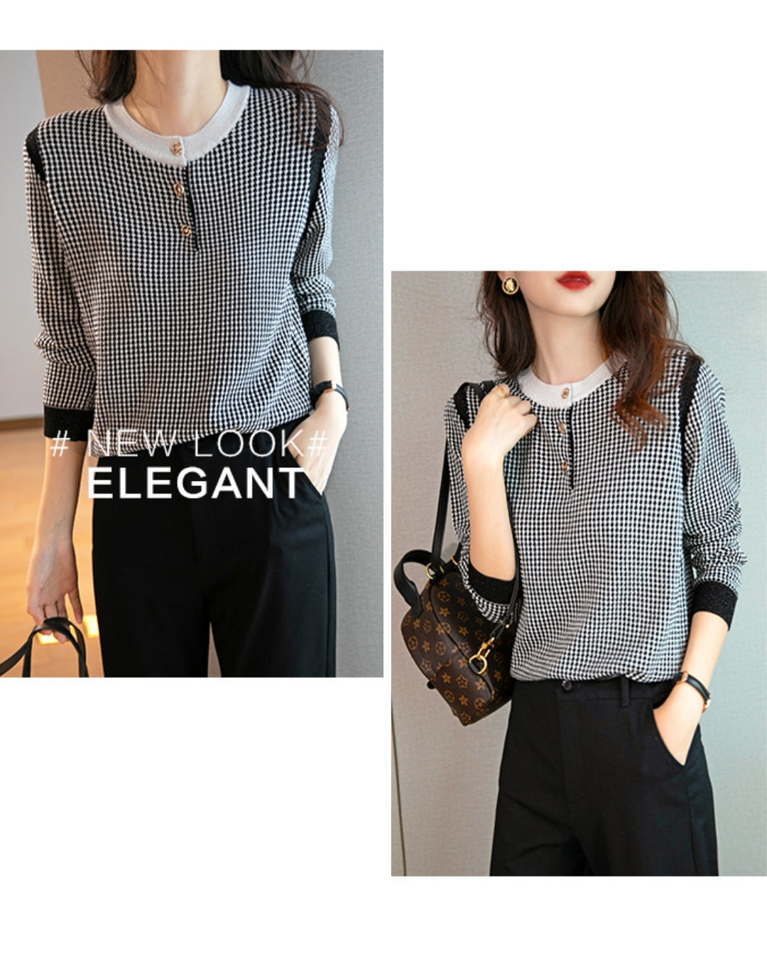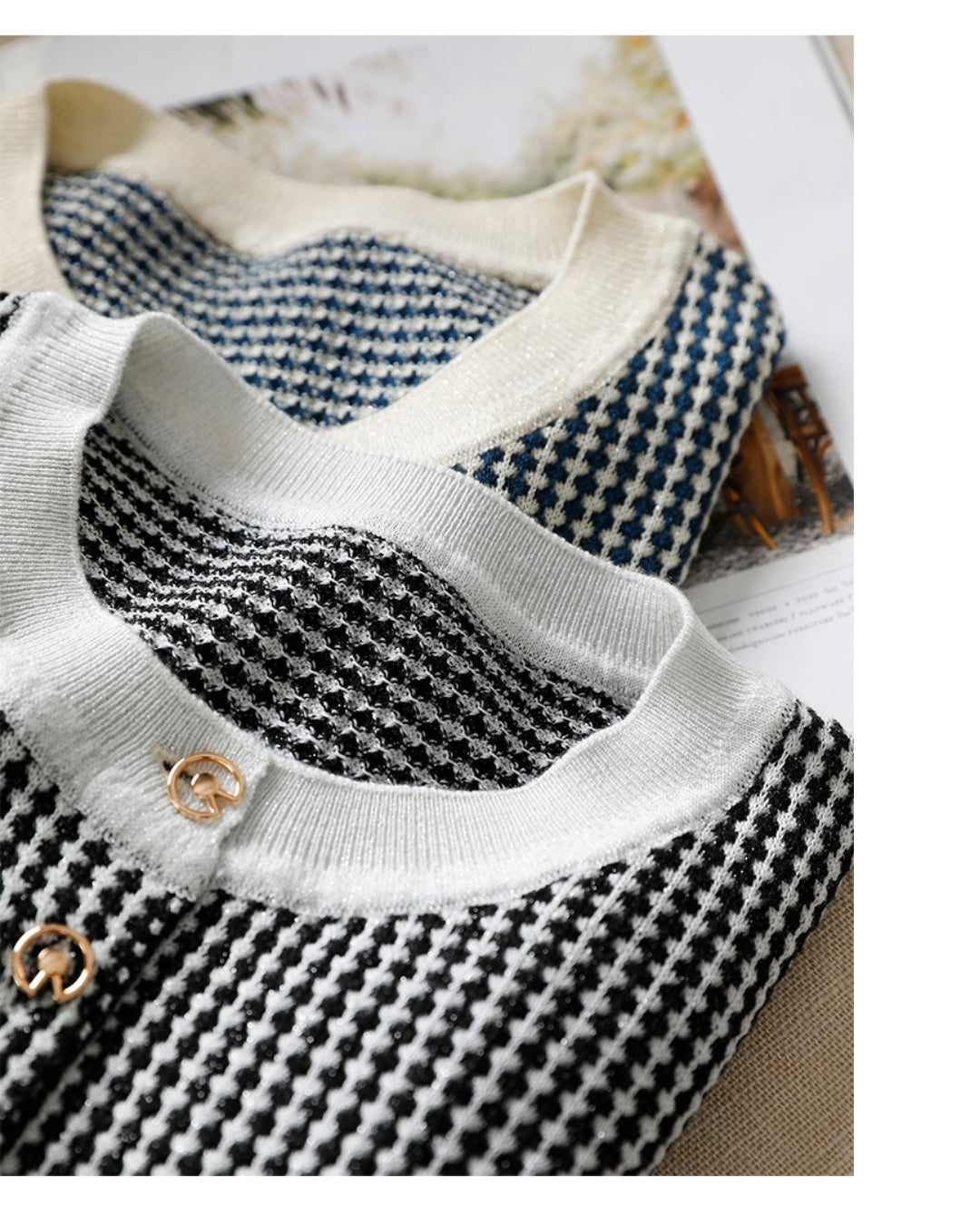 配色ボタンチェック柄トップス【千鳥格子で魅せる上品スタイル】