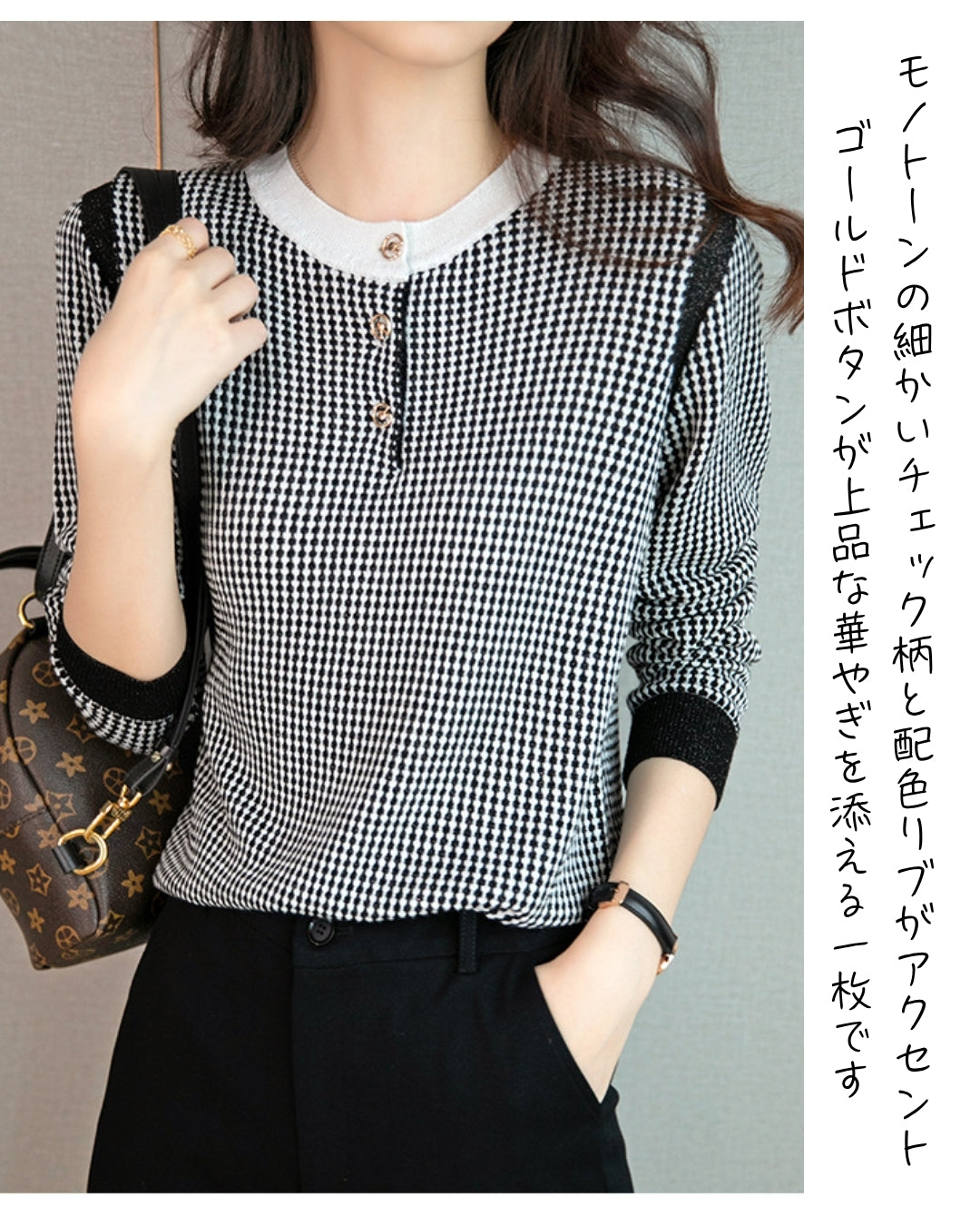 【配色デザインが映える千鳥格子トップス】