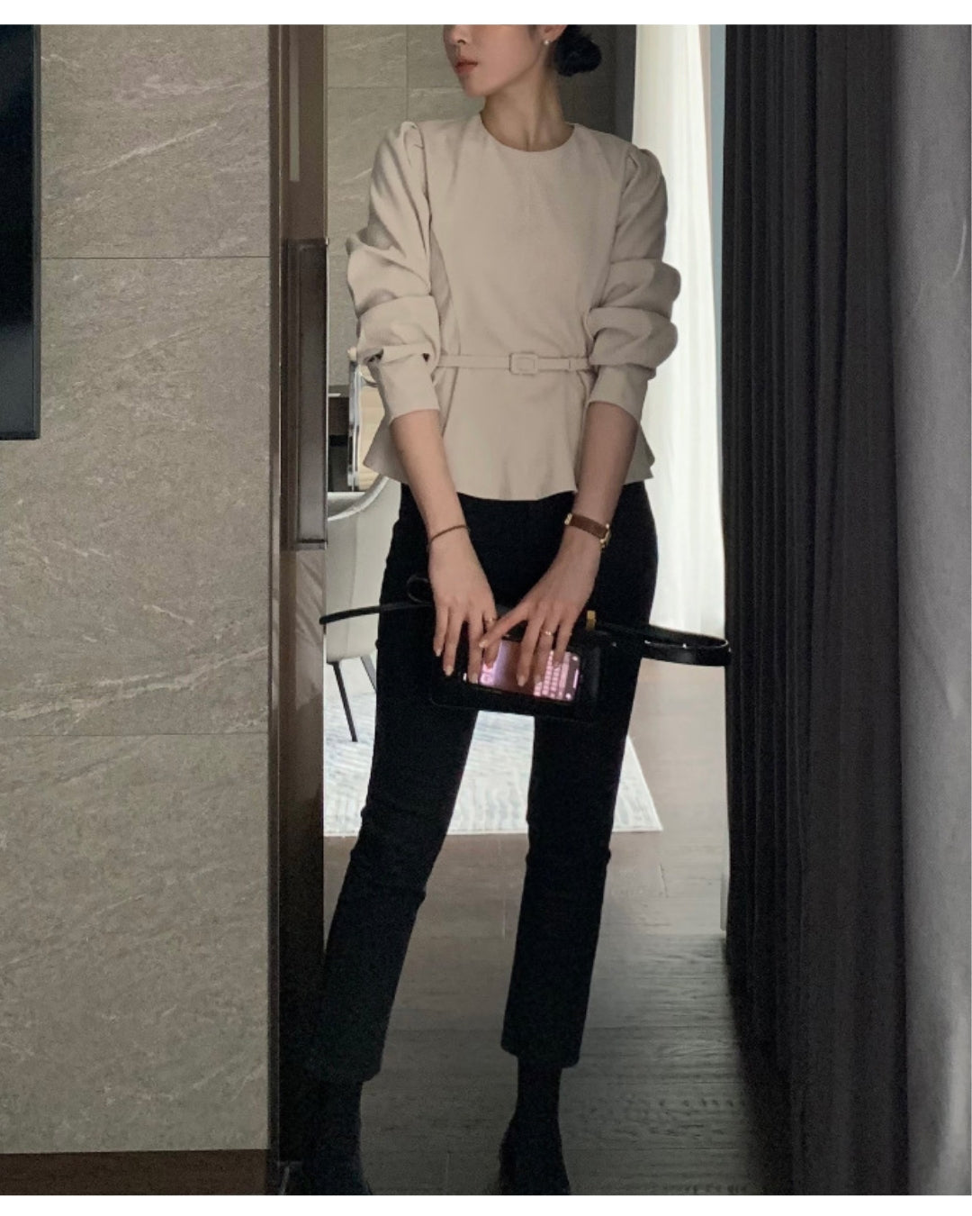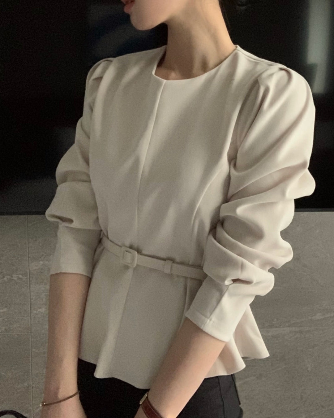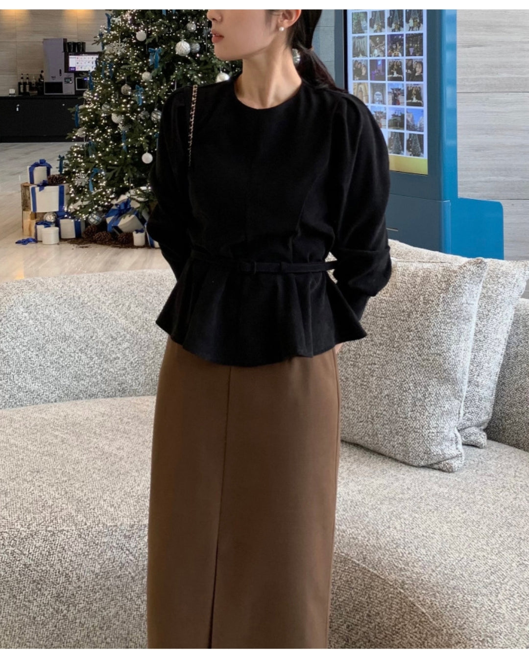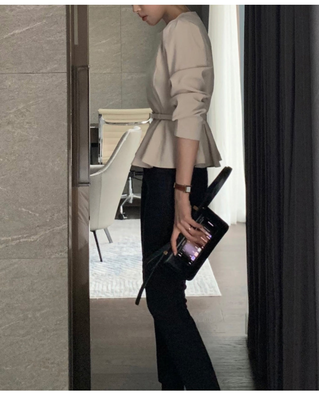 ✨美シルエットを叶える🎀ウエストベルト付きペプラムブラウス✨