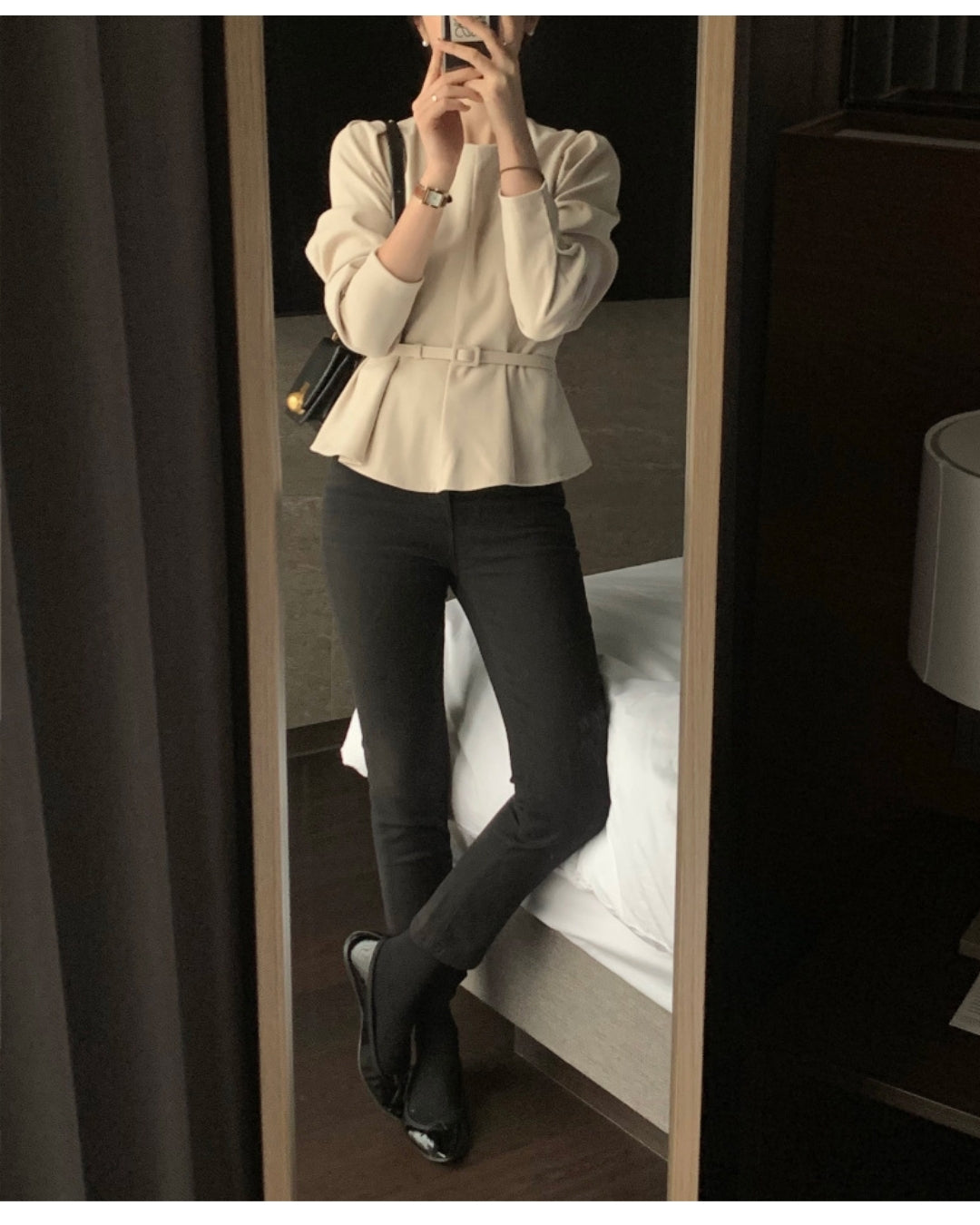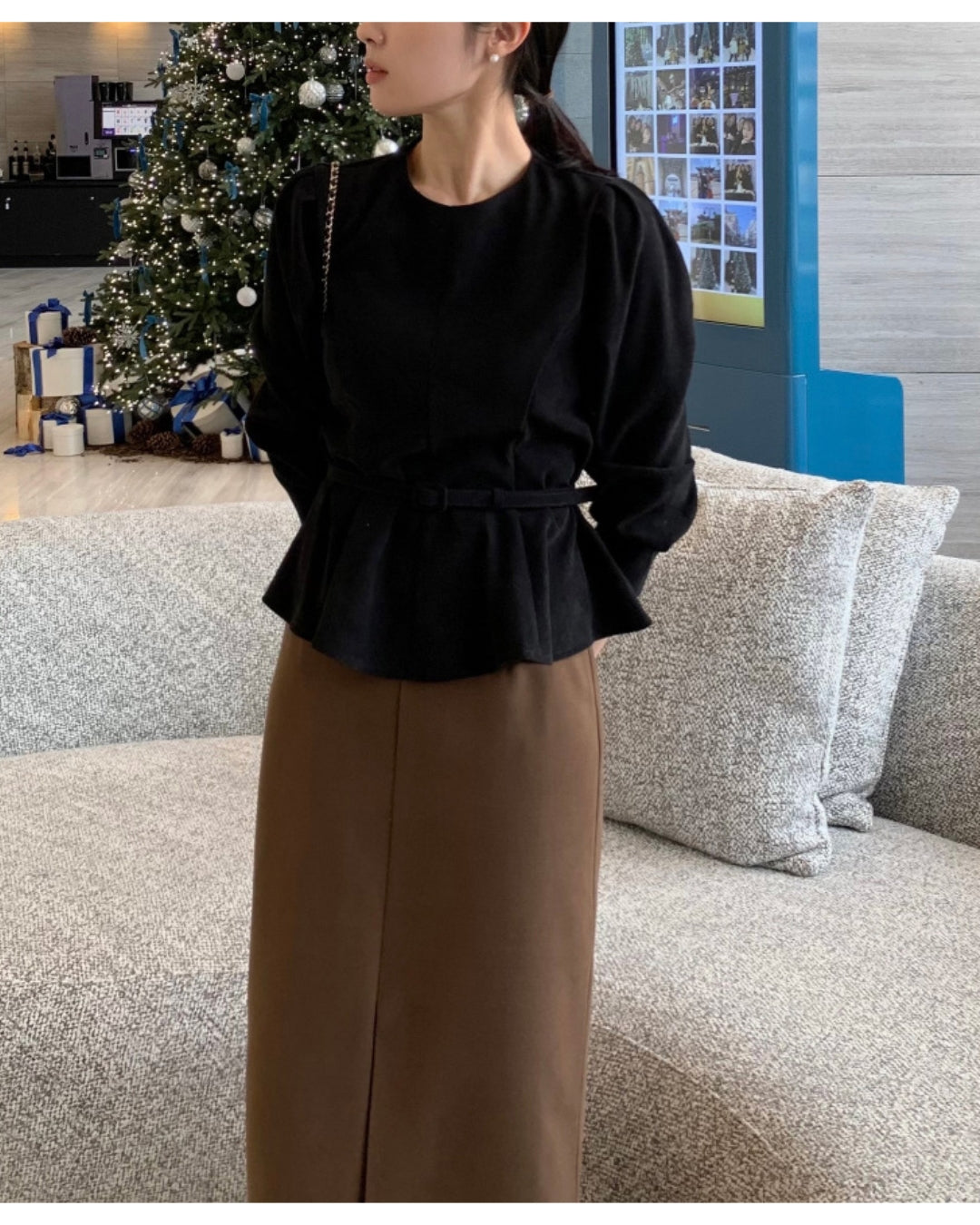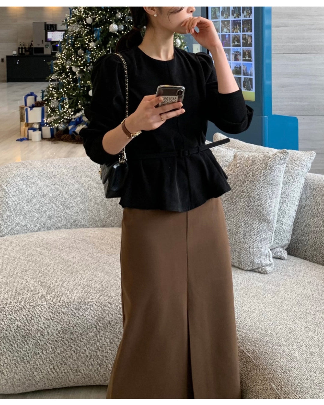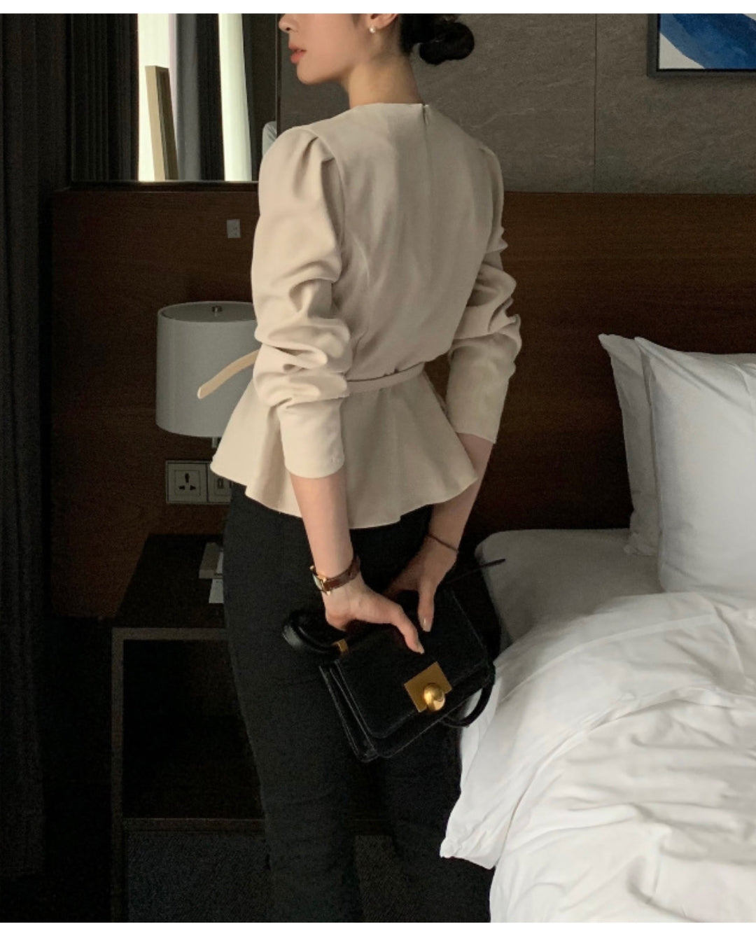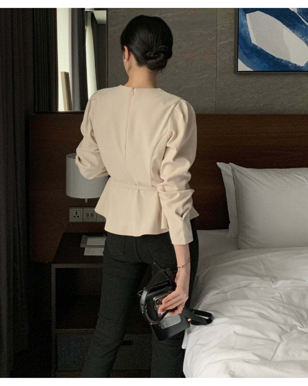 ✨美シルエットを叶える🎀ウエストベルト付きペプラムブラウス✨