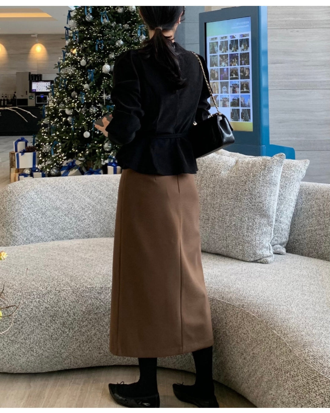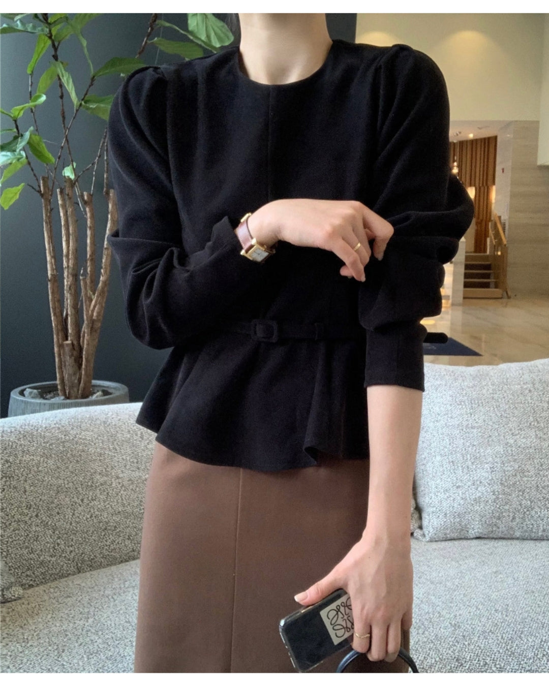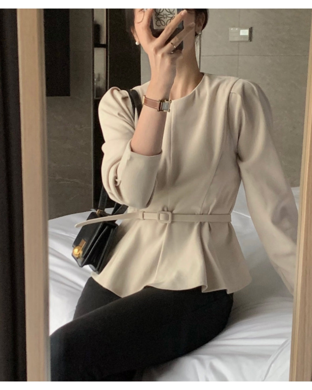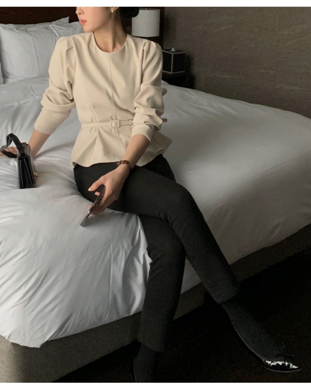 ✨美シルエットを叶える🎀ウエストベルト付きペプラムブラウス✨