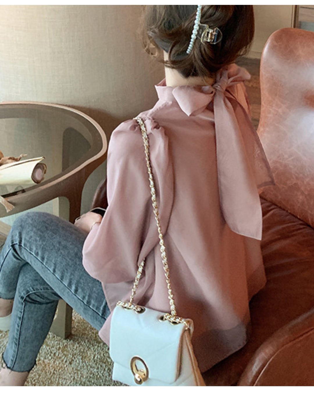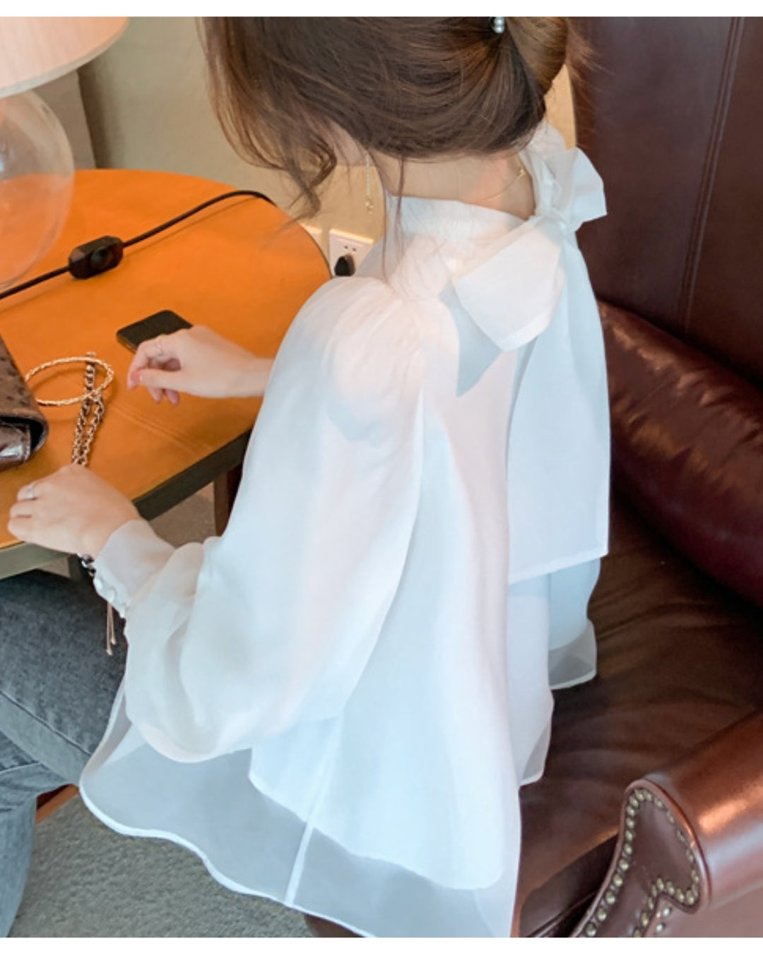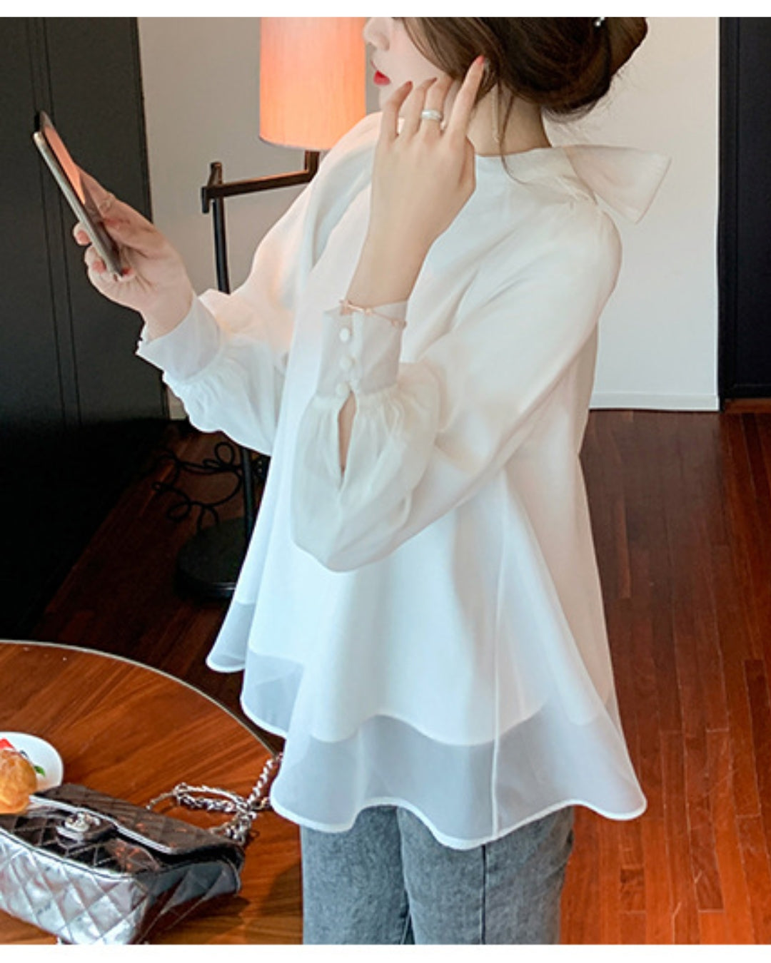 バックリボンシフォンブラウス【ゆったりフェミニン】