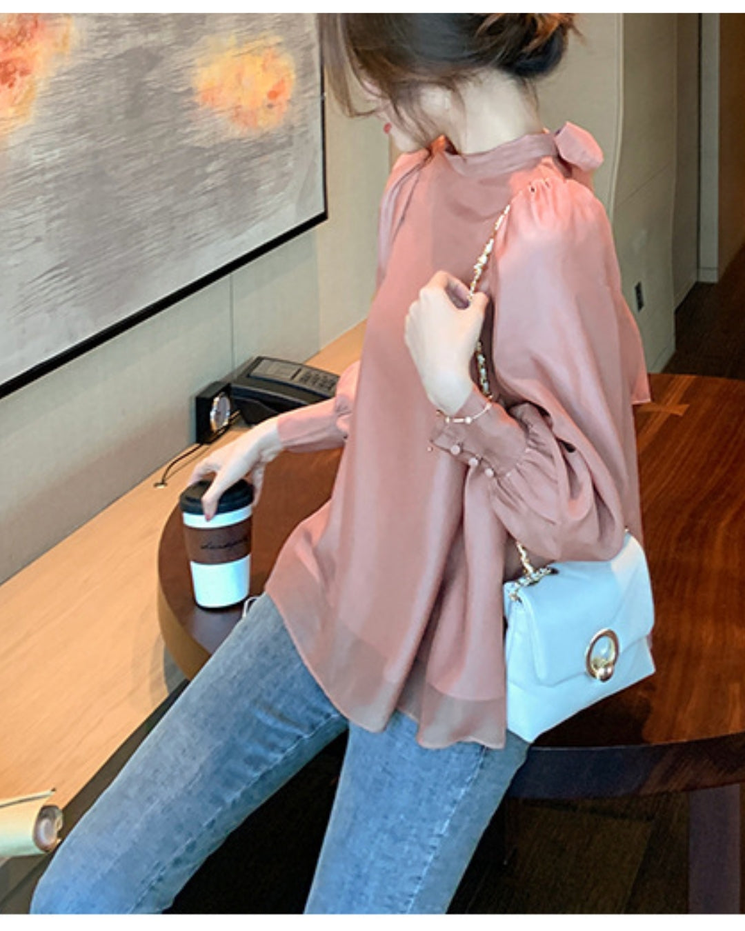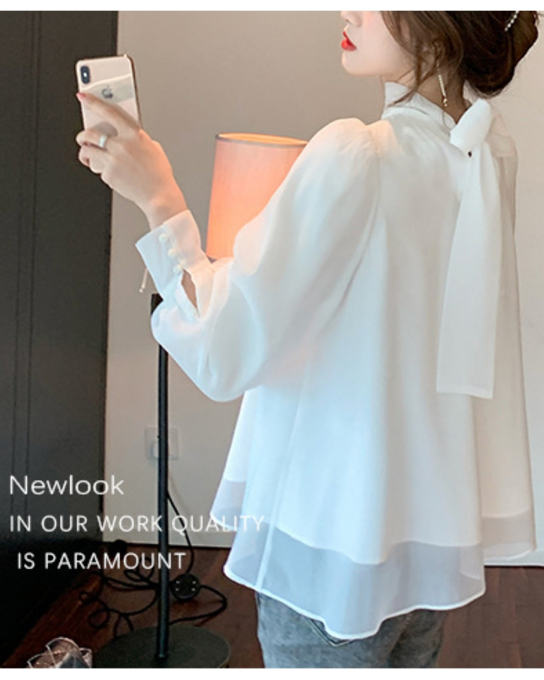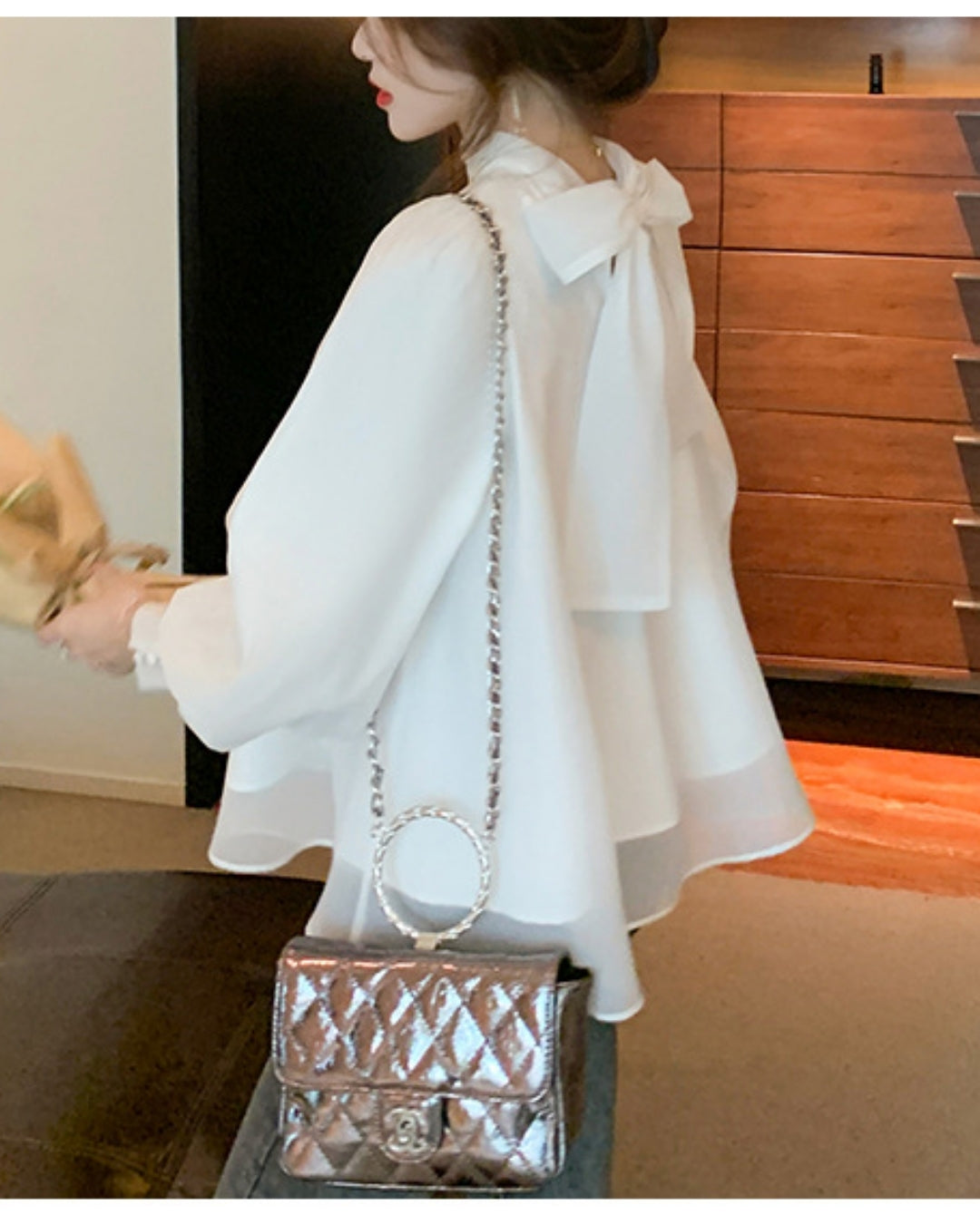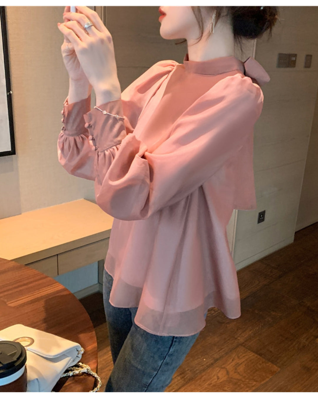 バックリボンシフォンブラウス【ゆったりフェミニン】
