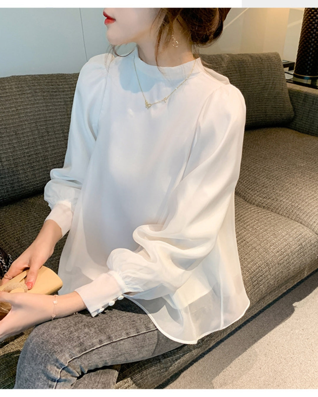 デニムでカジュアルにも、スカートでフェミニンにも。合わせ方次第で雰囲気が変わる万能ブラウス。シーンを選ばず着回せるので、忙しい朝のコーデも簡単に決まります。