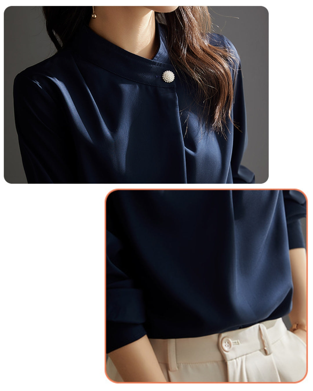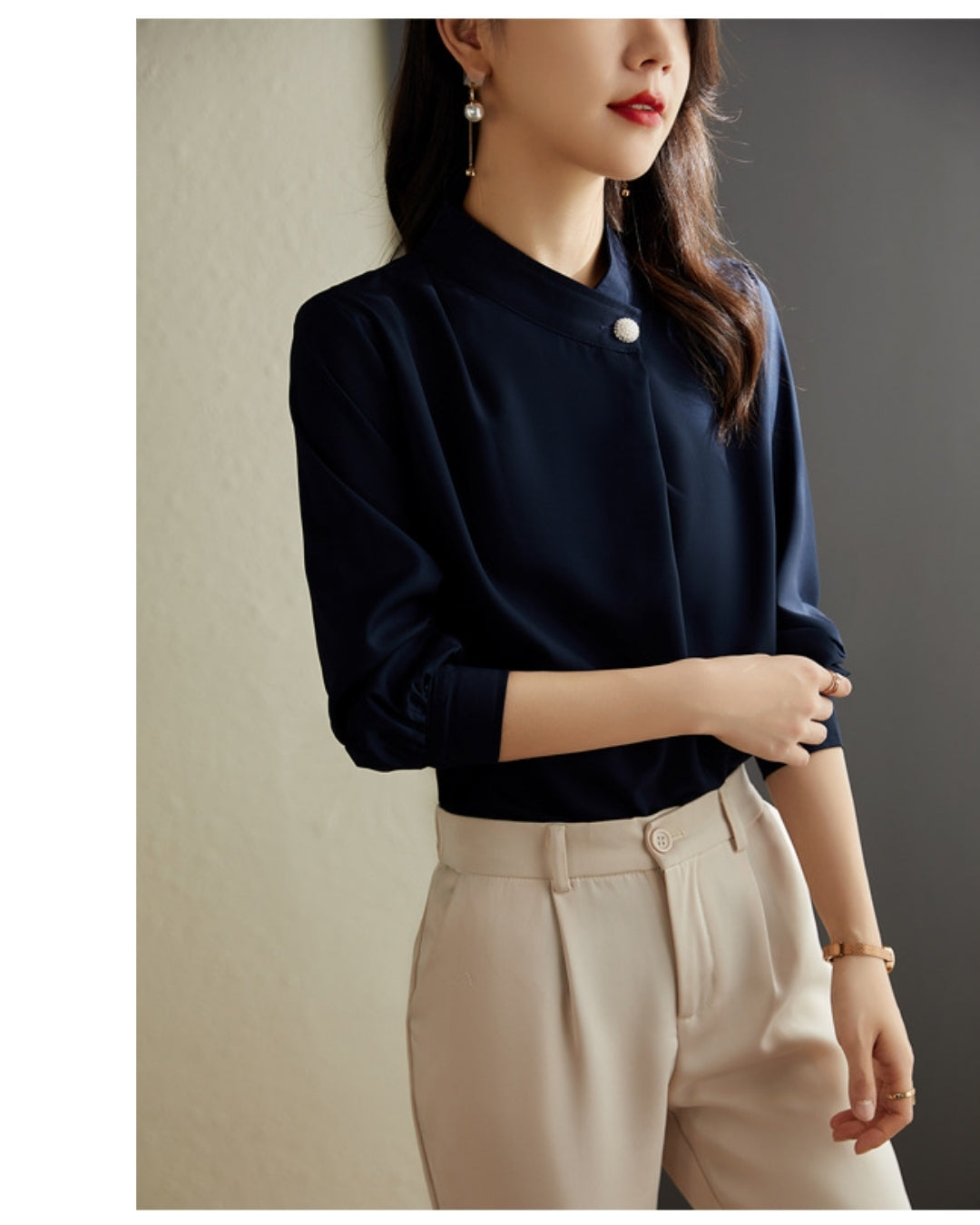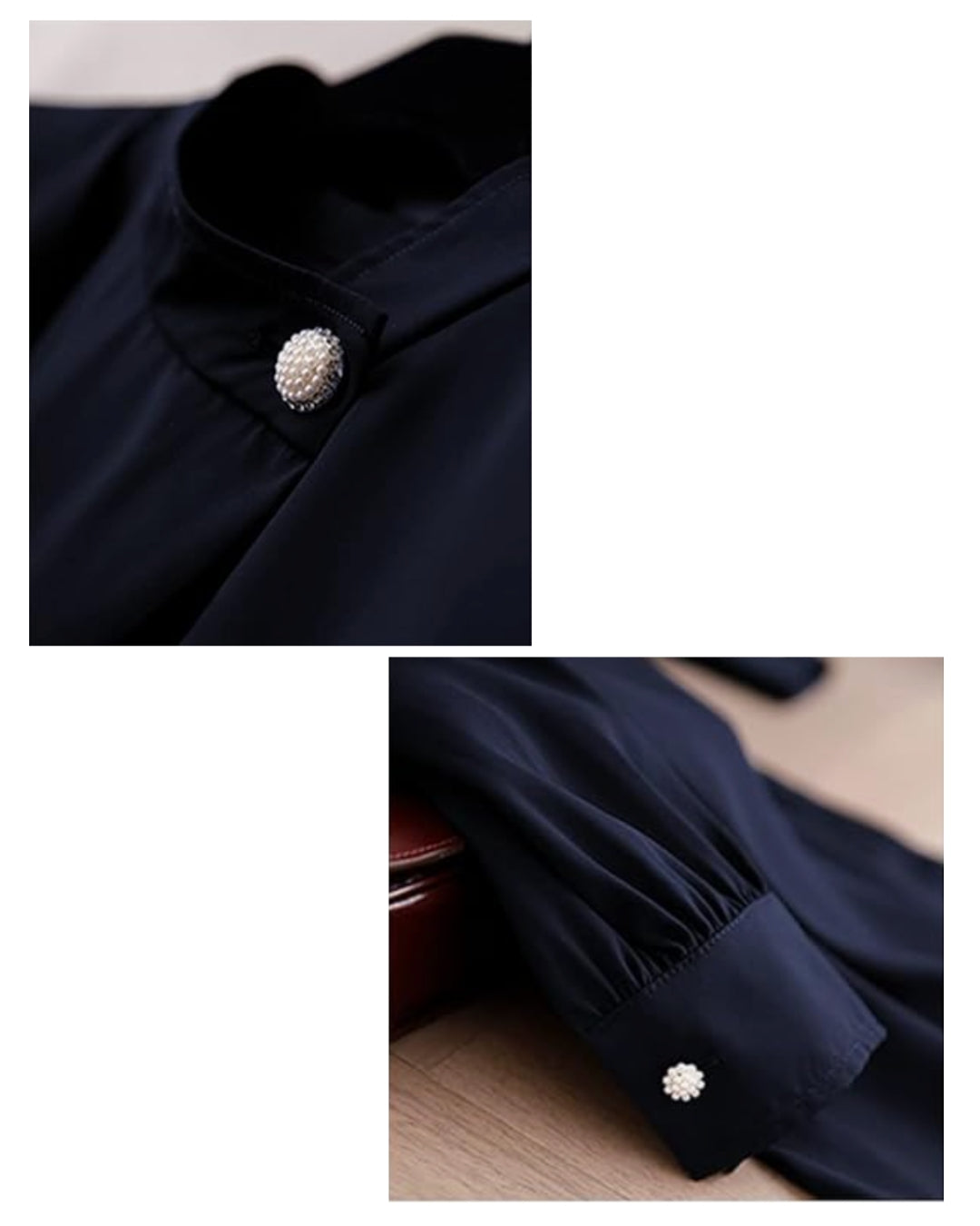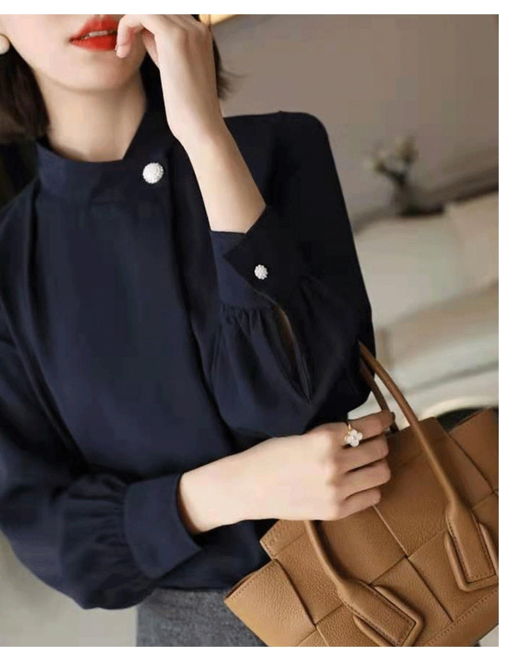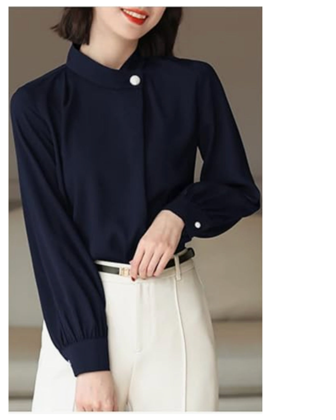 これ、正直…「普通のブラウスに戻れなくなるやつ」です👏✨ 立ち襟とパールボタンのおかげで、顔まわりが一気に品良く見えて“ちゃんとしてる人感”が爆上がり。着るだけで仕事もお出かけも自信持って出られるって、お客様からも大好評なんです😍