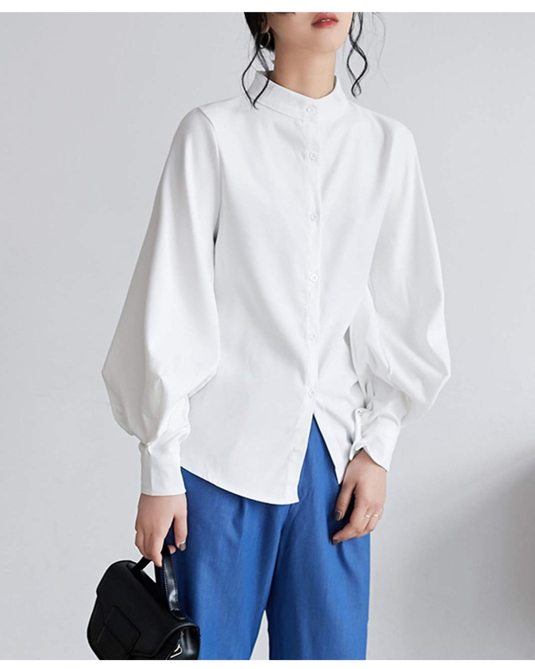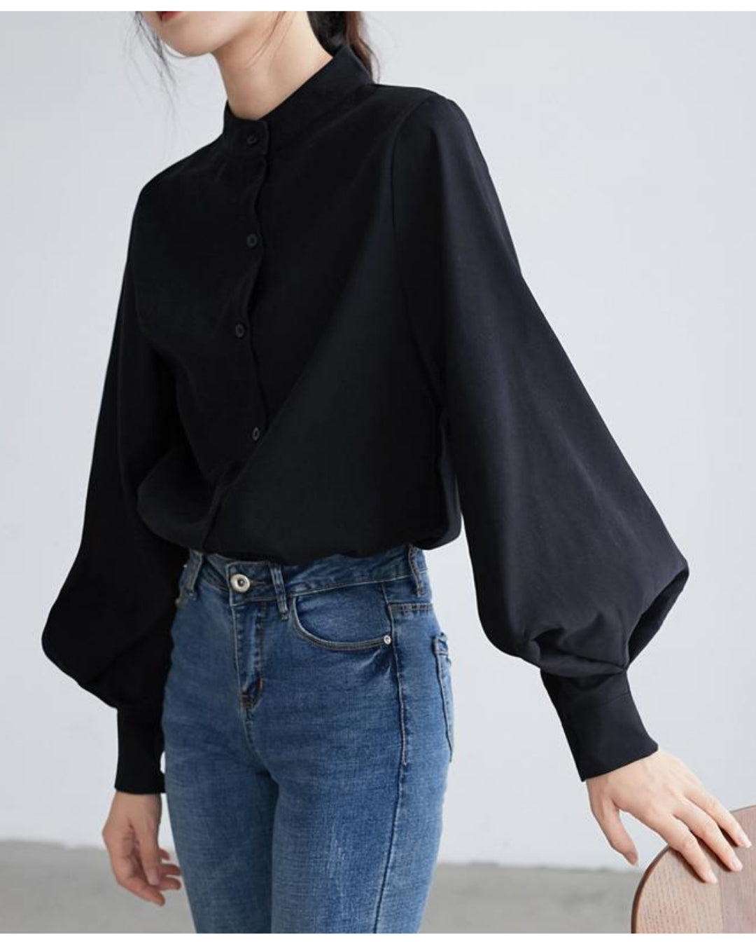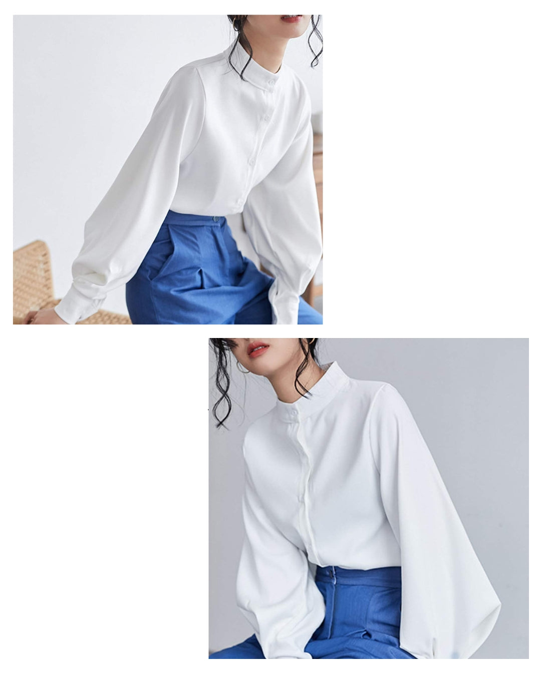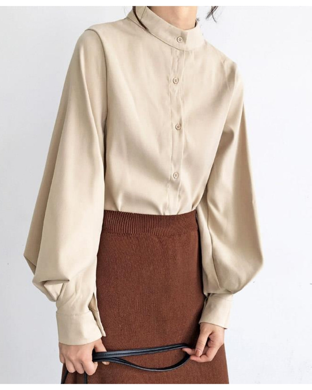 スタンドカラー長袖ブラウス【首元が華やぐ上品デザイン】