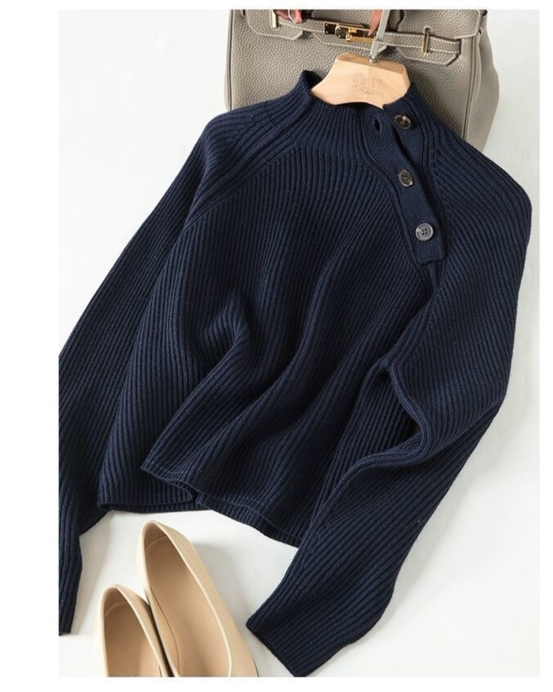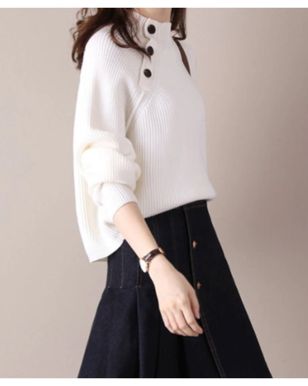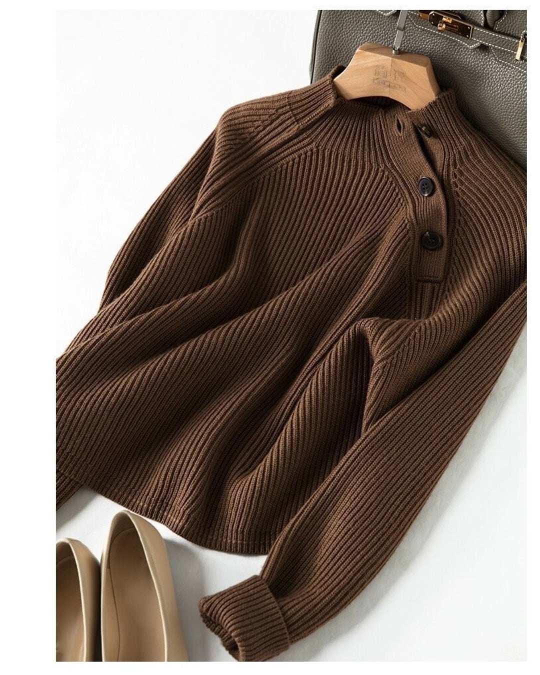 暖かさと上品さを兼ね備えた❄️サイドボタンリブ編みニット✨