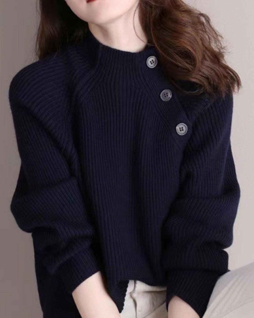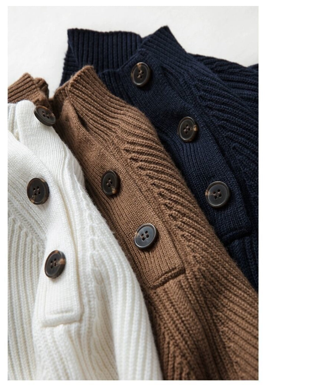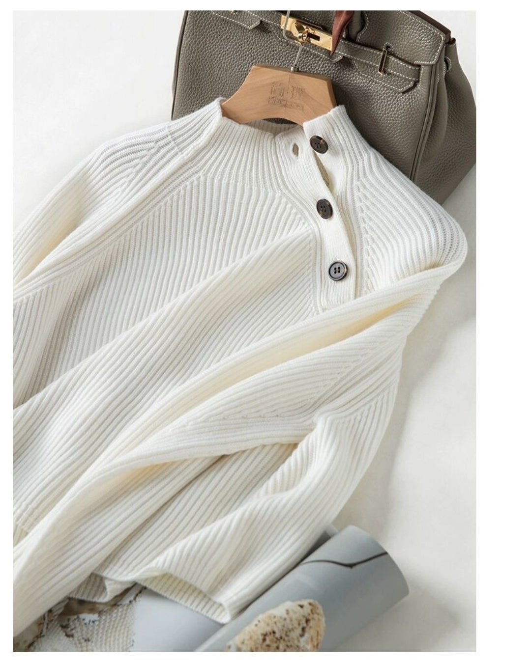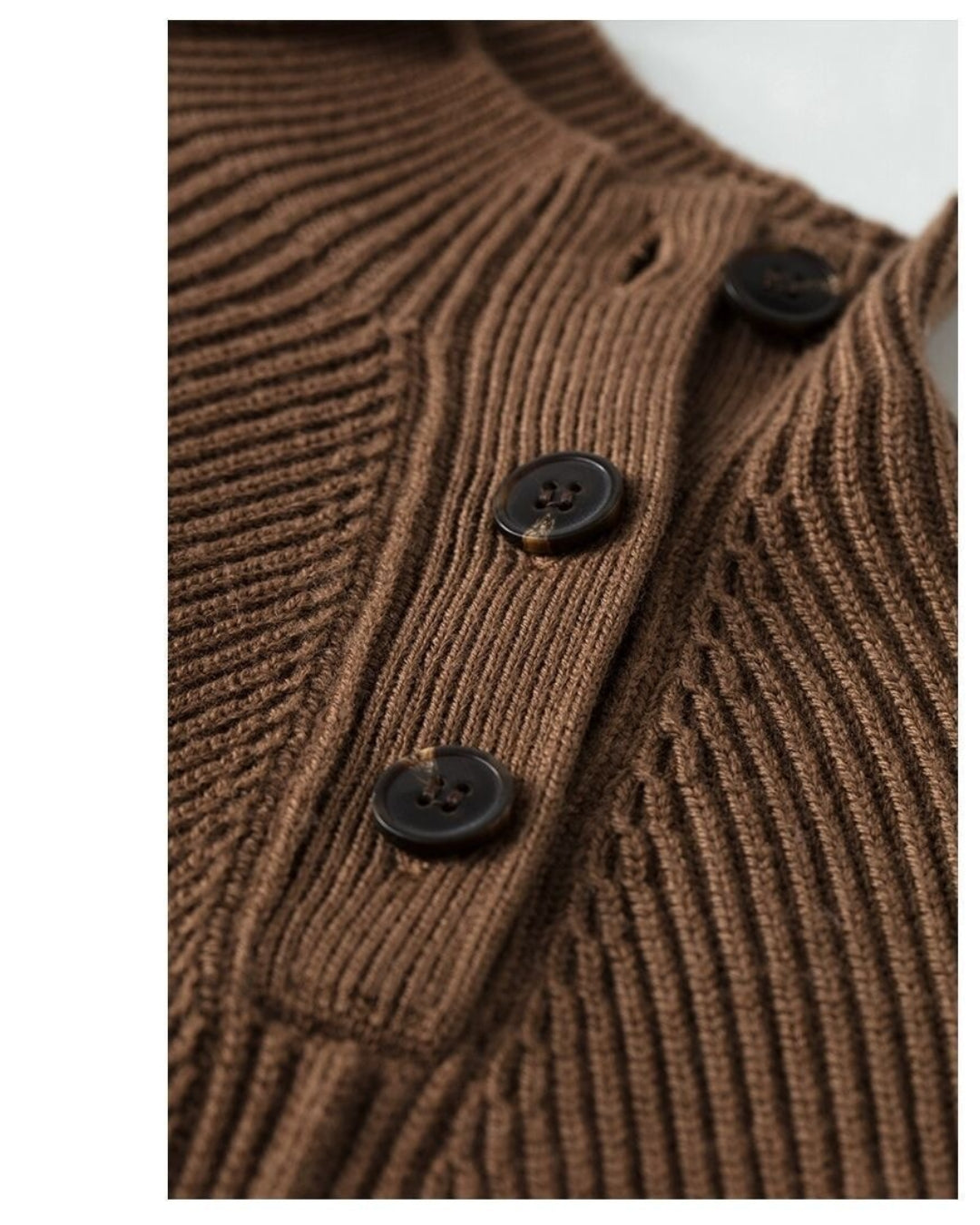 暖かさと上品さを兼ね備えた❄️サイドボタンリブ編みニット✨