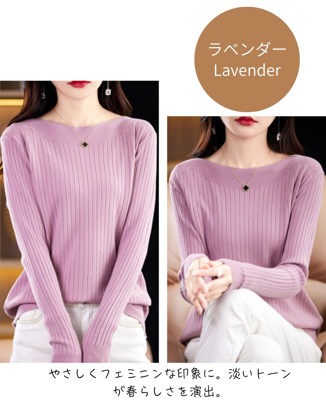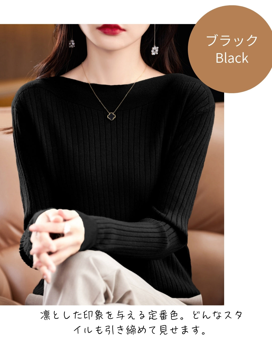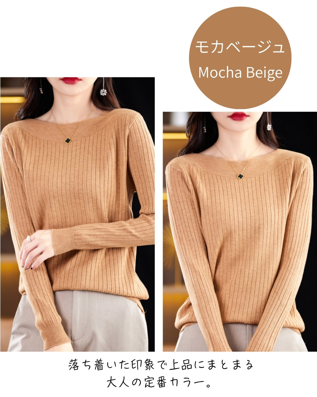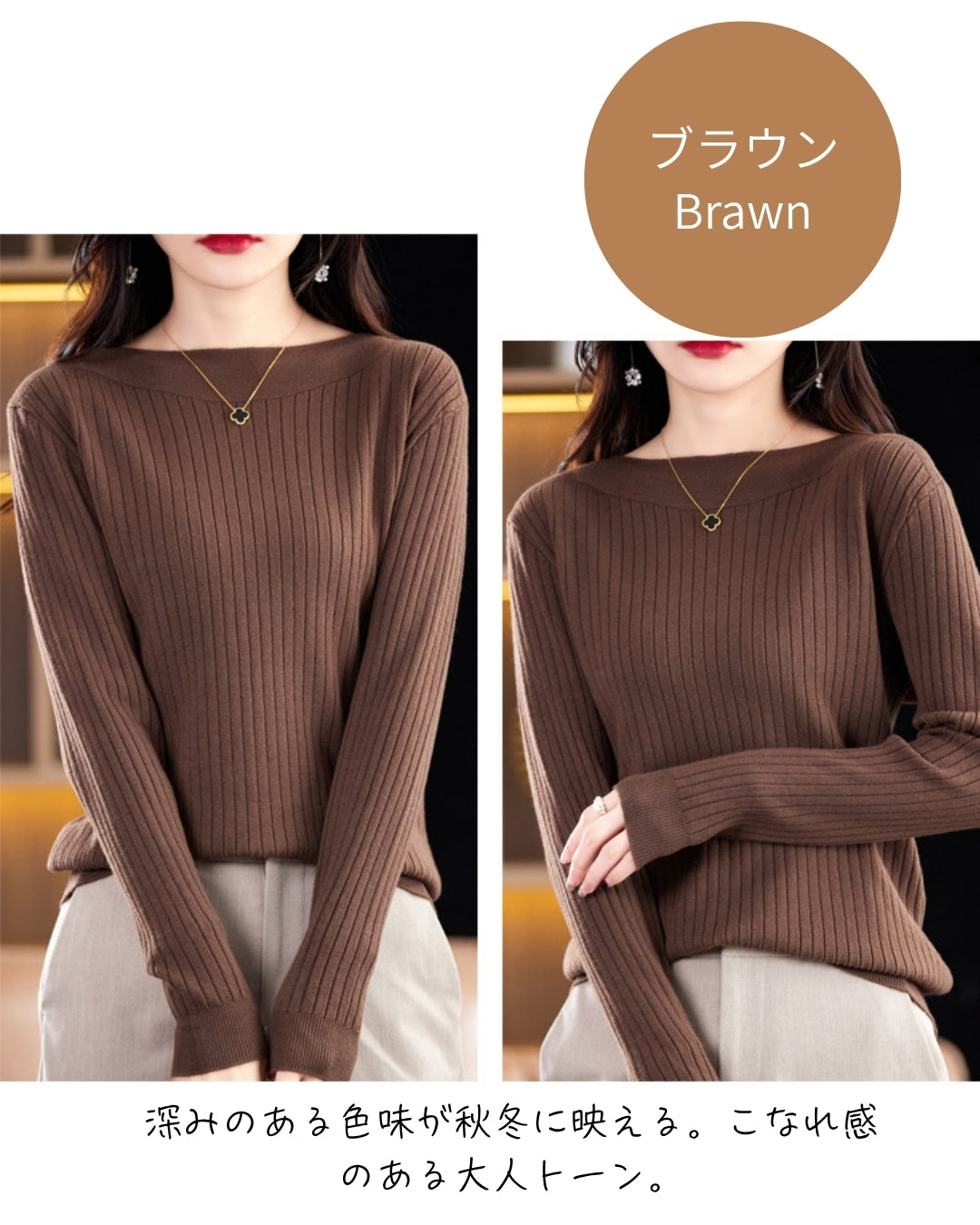 豊富な13色展開で、シーンや気分に合わせた着こなしが叶うボートネックニット。どのカラーも落ち着いた大人のトーンで、季節を問わず着回し自在です。