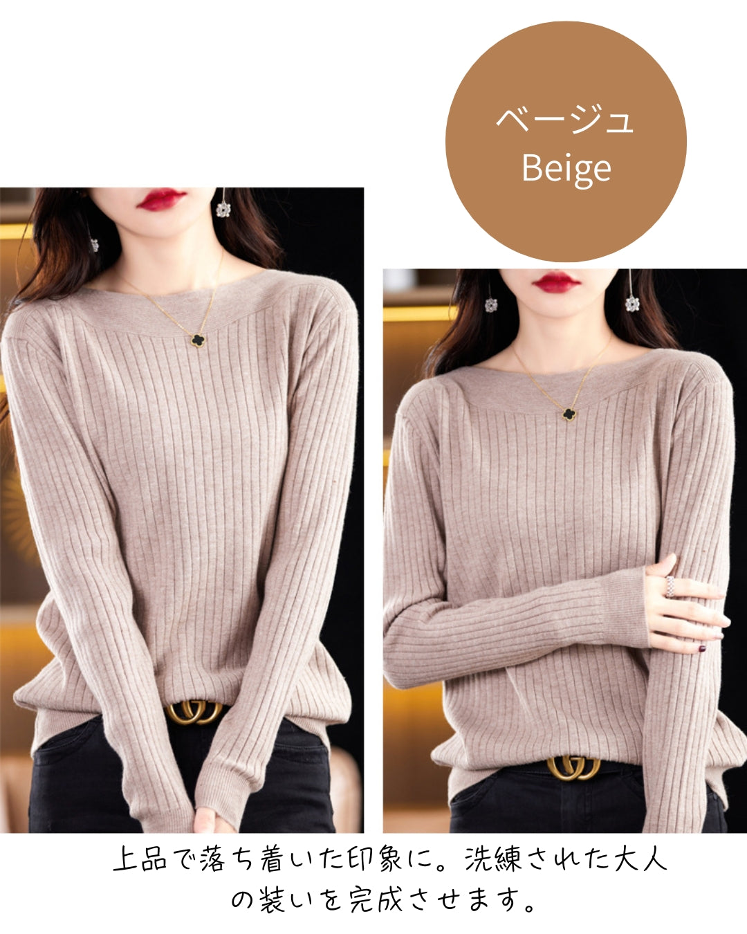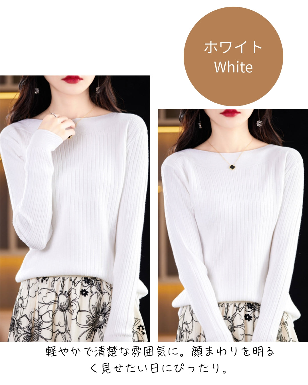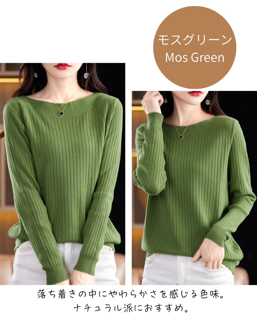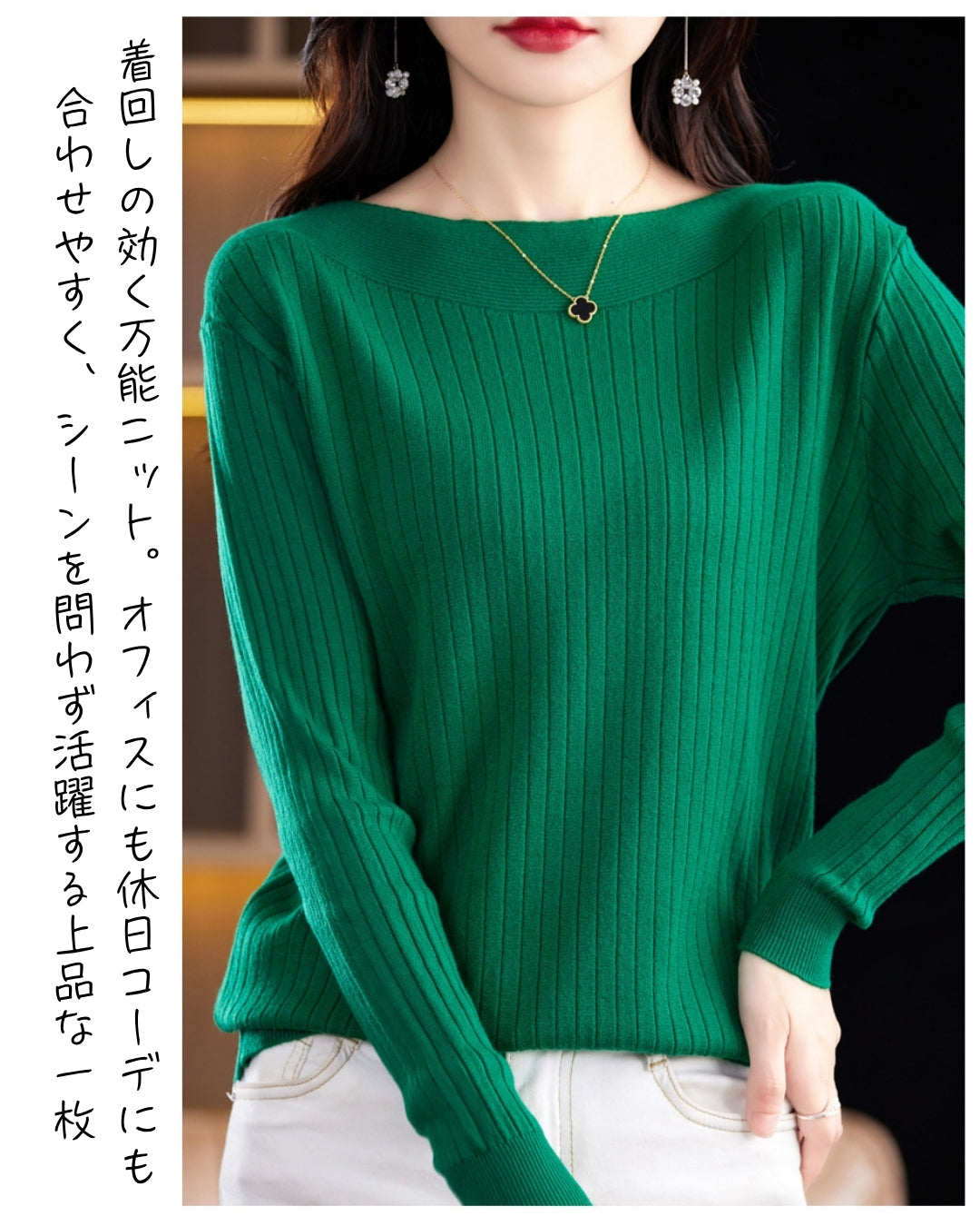 豊富な13色展開で、シーンや気分に合わせた着こなしが叶うボートネックニット。どのカラーも落ち着いた大人のトーンで、季節を問わず着回し自在です。