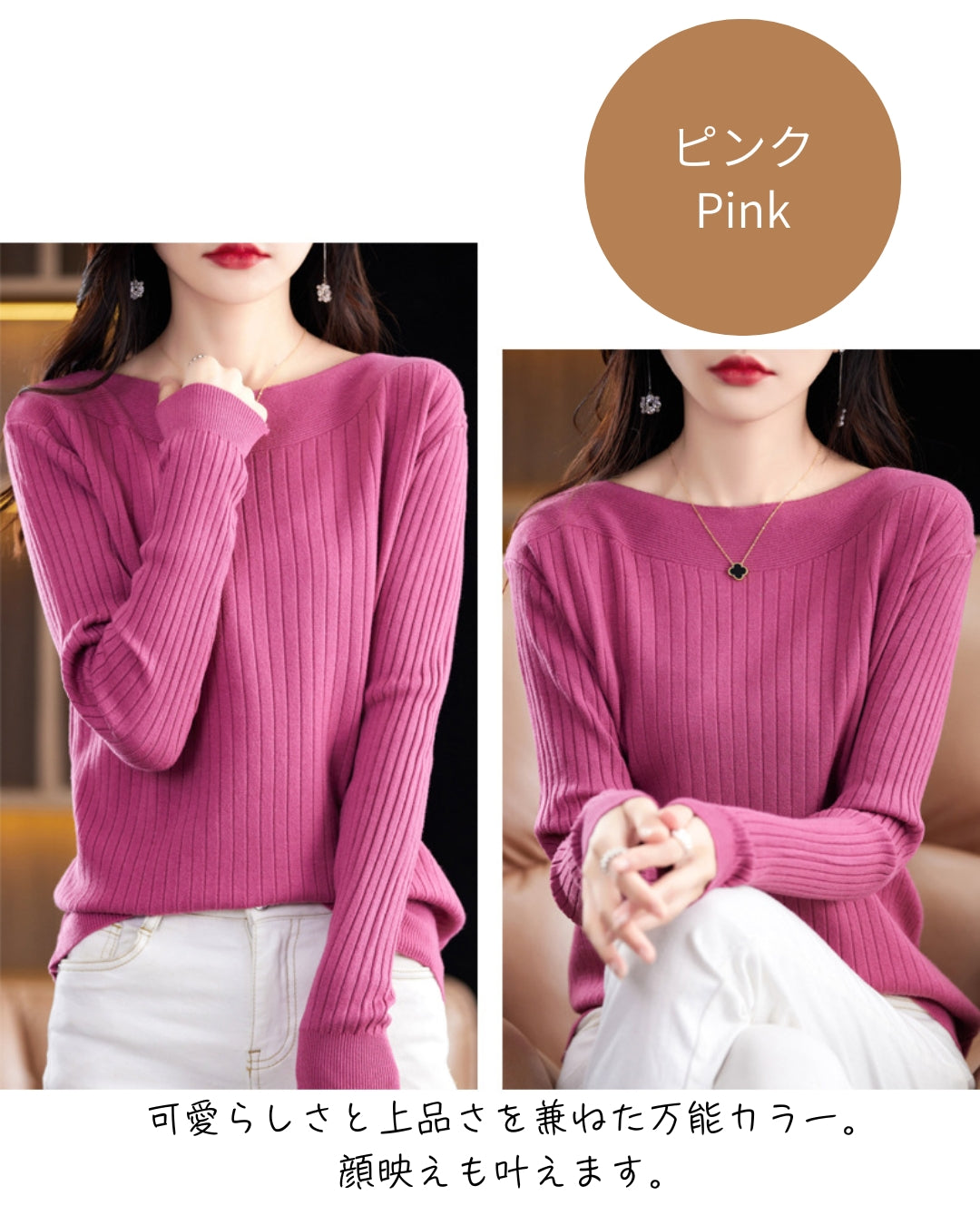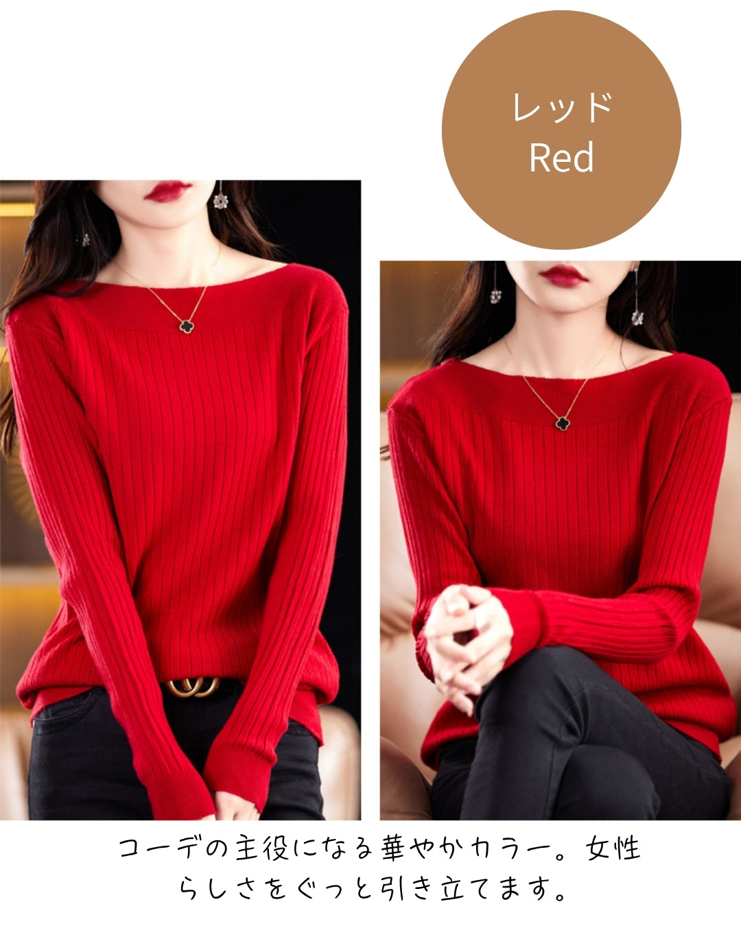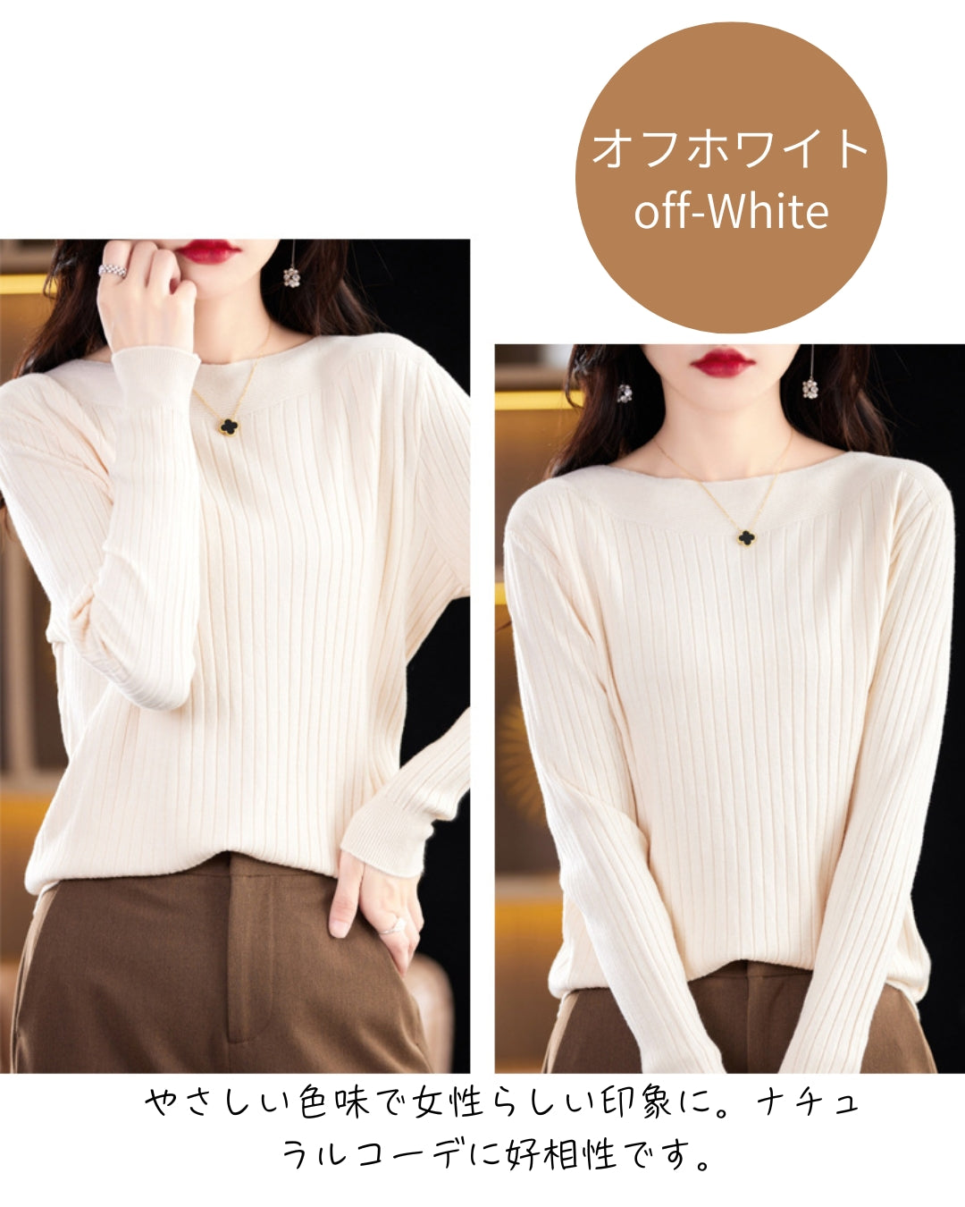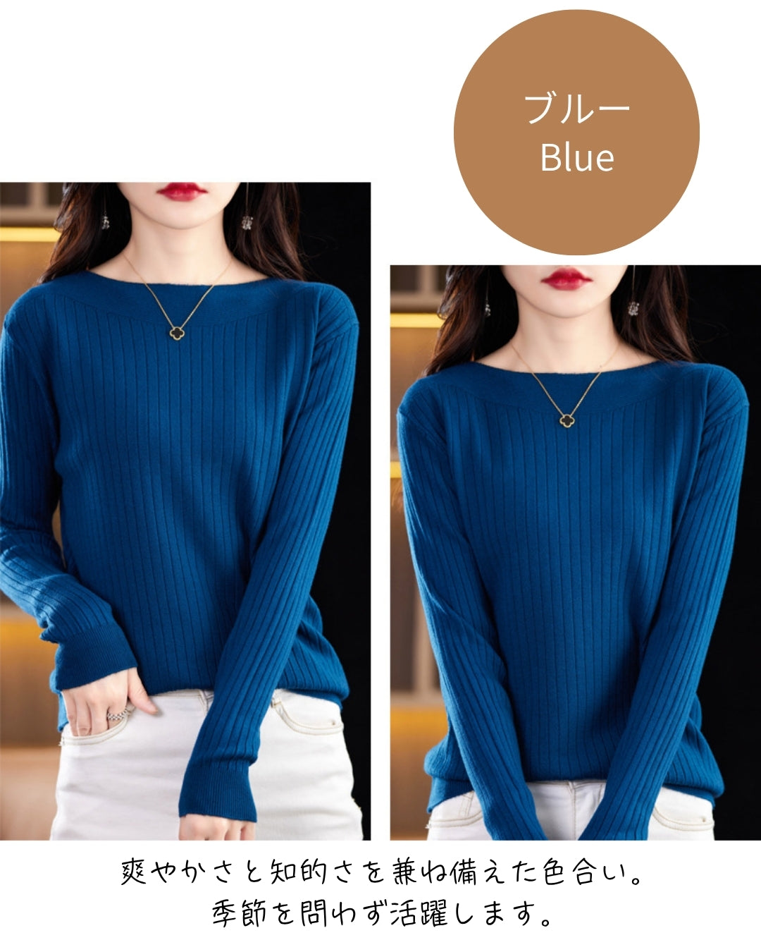 豊富な13色展開で、シーンや気分に合わせた着こなしが叶うボートネックニット。どのカラーも落ち着いた大人のトーンで、季節を問わず着回し自在です。